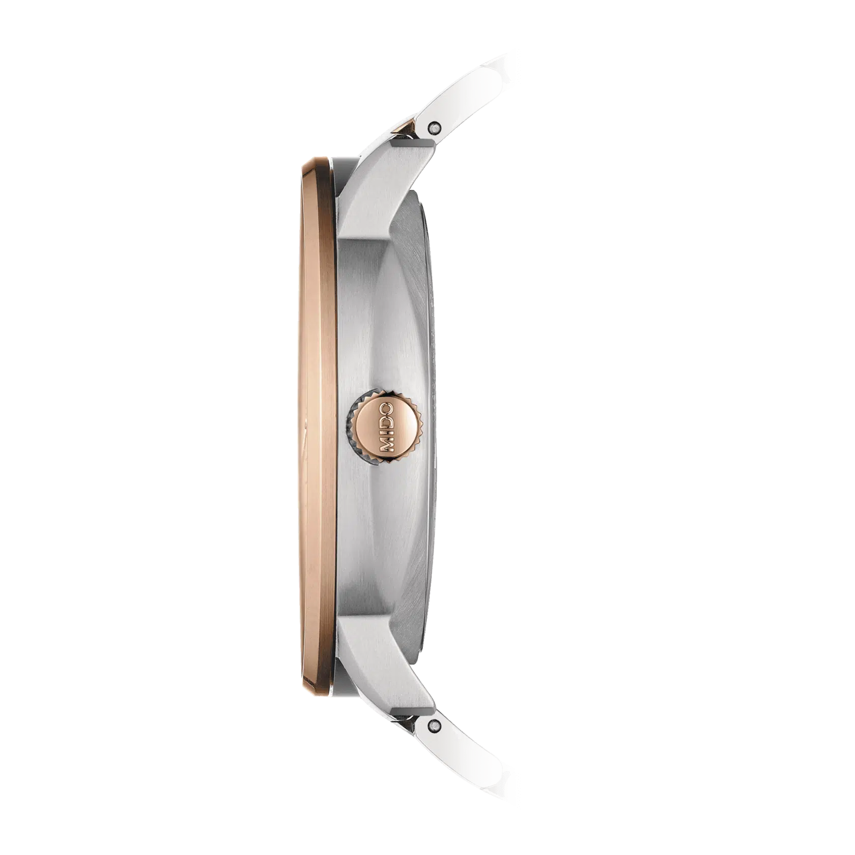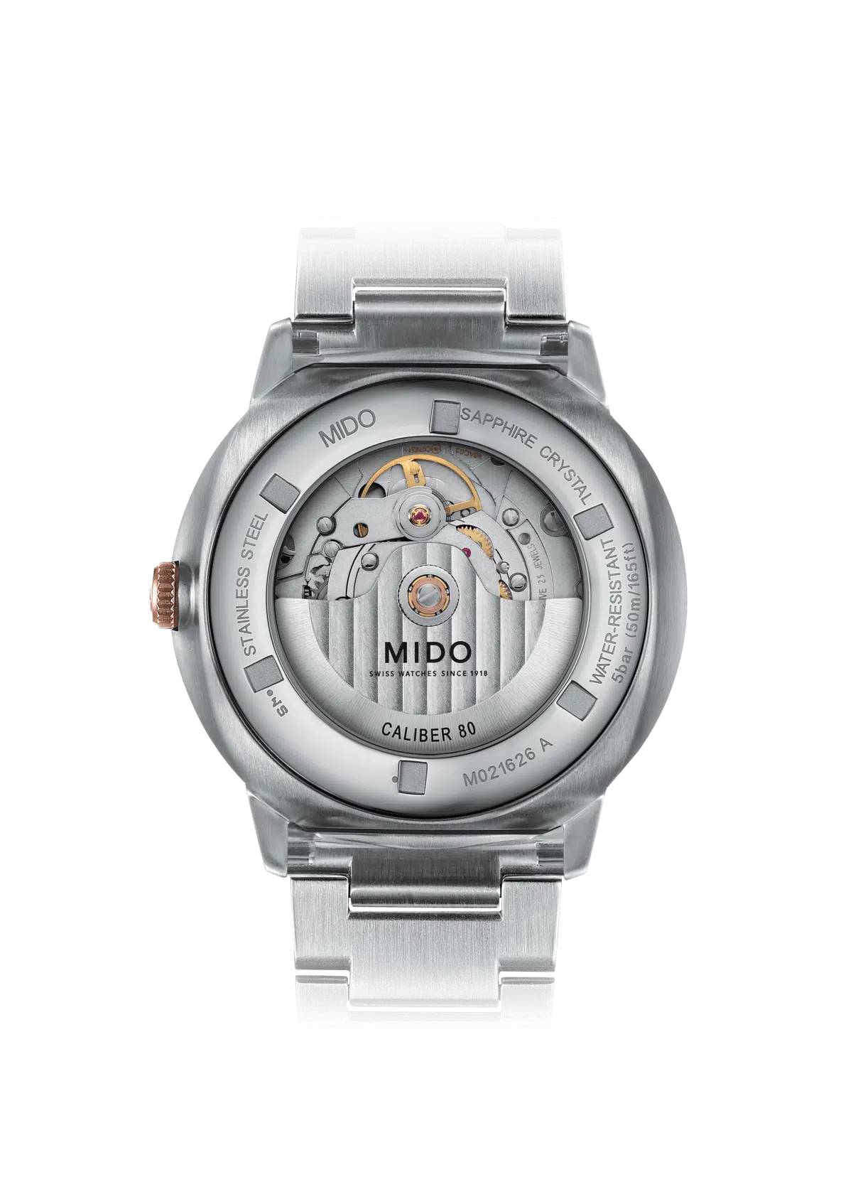 The MIDO Caliber 80 represents a major advance in self-winding movements. Thanks to its new-generation technology, it offers up to 80 hours of power reserve – twice as much as a conventional movement.