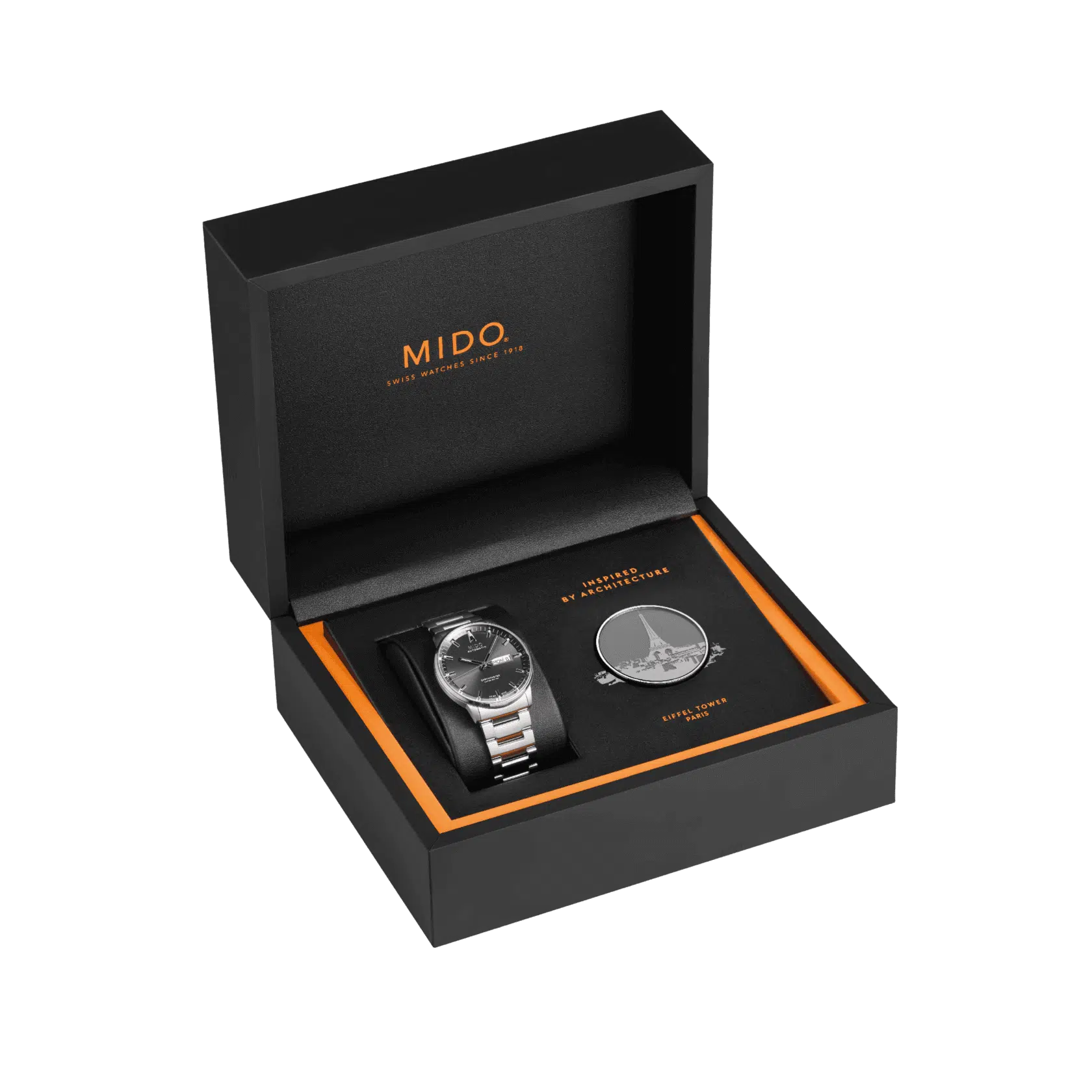 Per i suoi componenti, MIDO utilizza esclusivamente acciaio inox di alta qualità, minuziosamente lavorato in varie finiture. Ipoallergenico e facile da mantenere, questo materiale è resistente alla corrosione e ai campi magnetici e offre una maggiore durata.