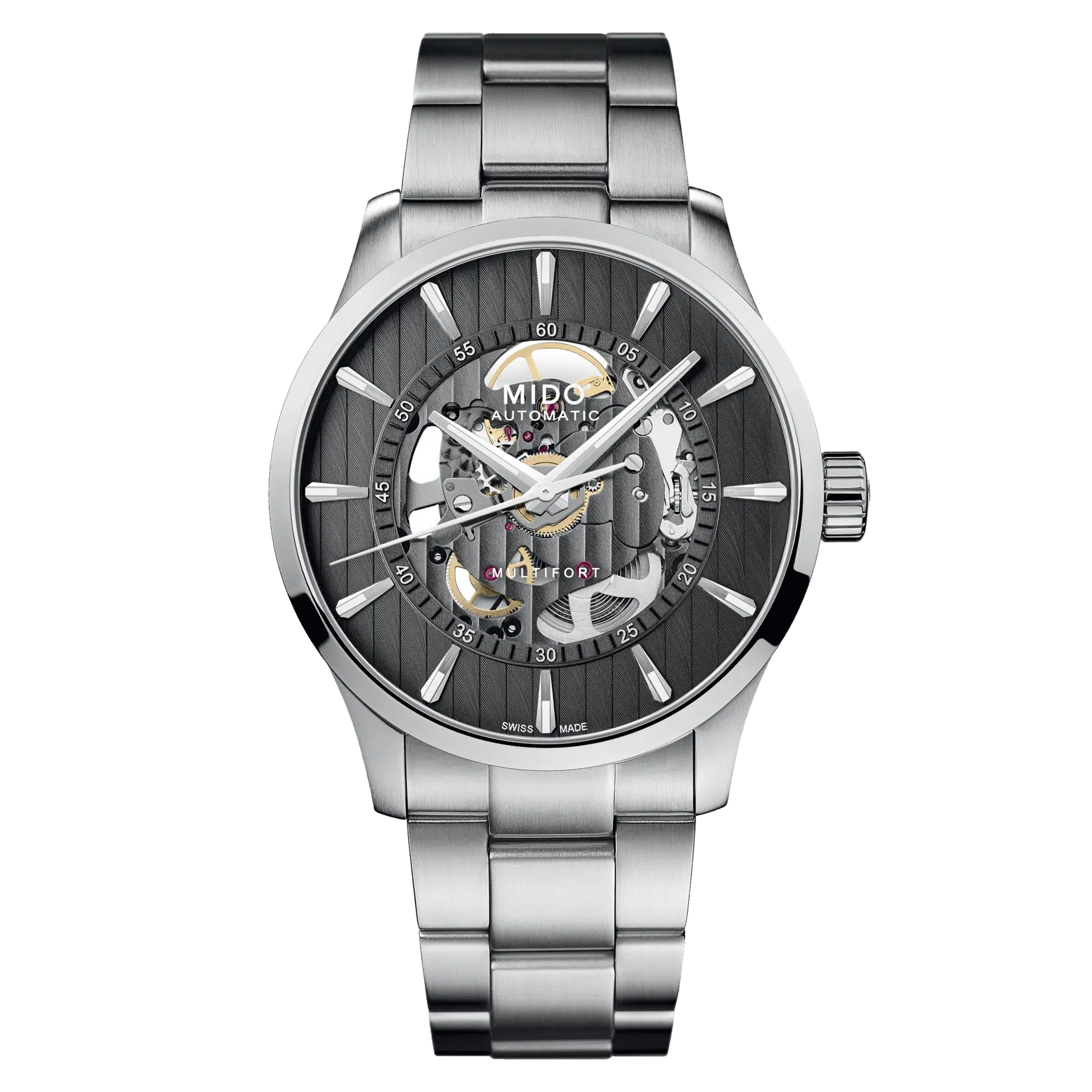 Per i suoi componenti, MIDO utilizza esclusivamente acciaio inox di alta qualità, minuziosamente lavorato in varie finiture. Ipoallergenico e facile da mantenere, questo materiale è resistente alla corrosione e ai campi magnetici e offre una maggiore durata.
