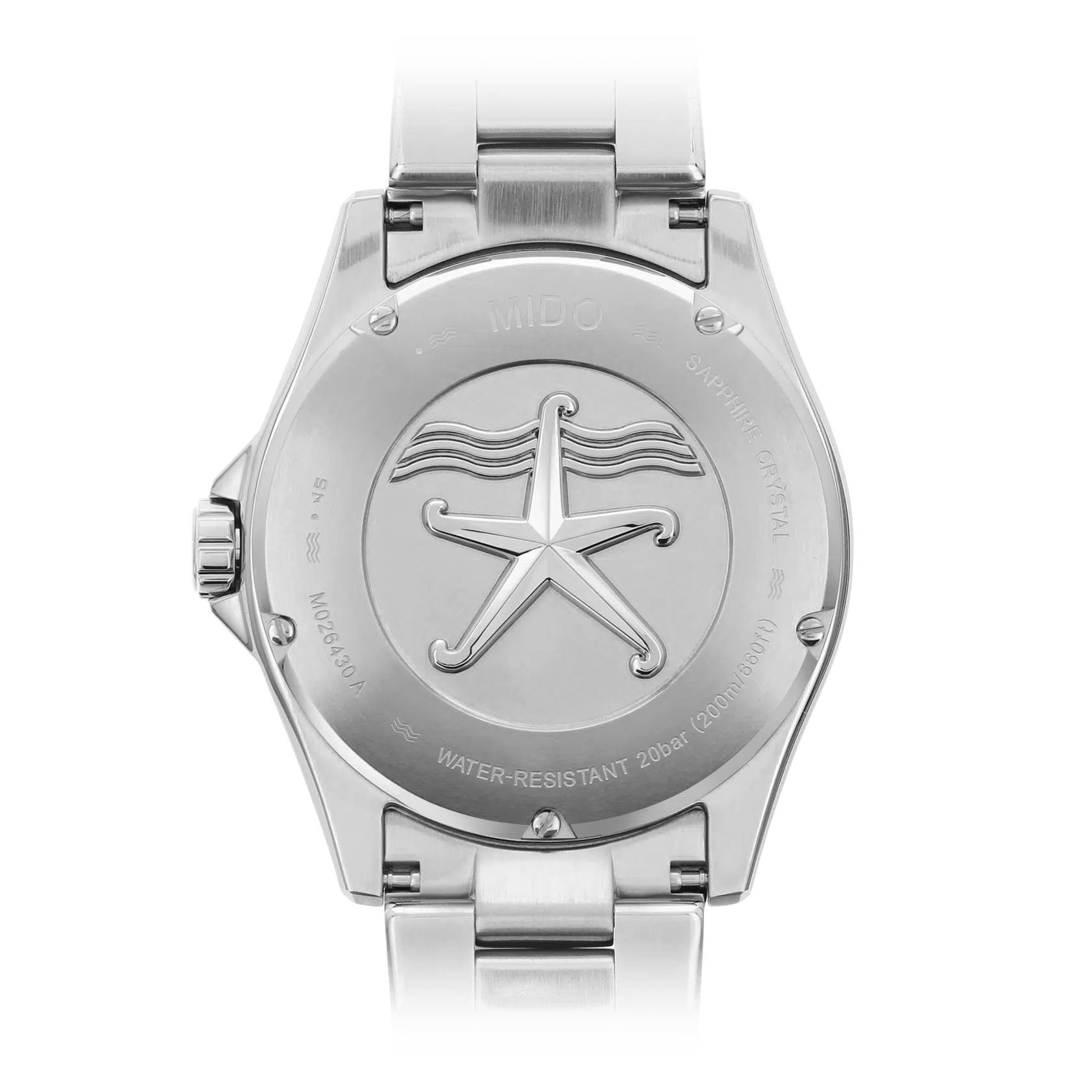 In grado di resistere a pressioni fino a 20 bar (200 m/660 ft) e dotato di corona avvitata a vite , quest’orologio offre una protezione ottimale contro l’acqua. Le sue eccezionali prestazioni sono il risultato delle note competenze di MIDO in materia di impermeabilità.