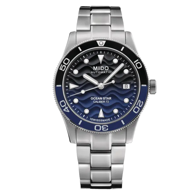 Parti per un’avventura, sulla terraferma o attraverso l’oceano, ma sempre con grande stile! MIDO propone quello che è innegabilmente il suo modello più versatile della linea Ocean Star, un compagno sportivo, affidabile e chic per qualsiasi avventura. Il diametro perfetto di 39 mm è abbinato ad una cassa estremamente sottile per l’Ocean Star. L’estetica di questo orologio automatico è definita anche dal quadrante in rilievo, unico e distintivo, che evoca il movimento delle correnti sulla sabbia. Impermeabile fino a una pressione di 200 m (20 bar / 660 ft), il famoso motivo della stella marina – emblema della storica competenza di MIDO in materia di impermeabilità – è riportato sul fondello a vite.