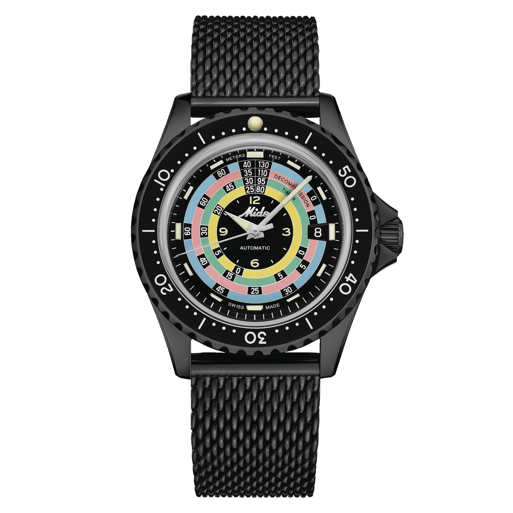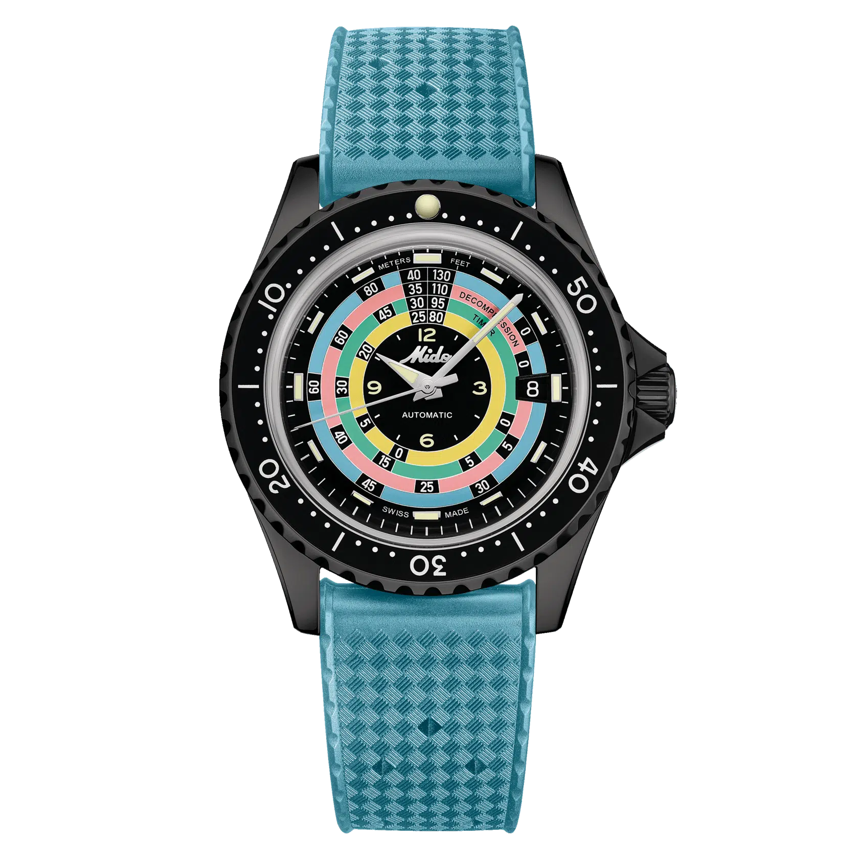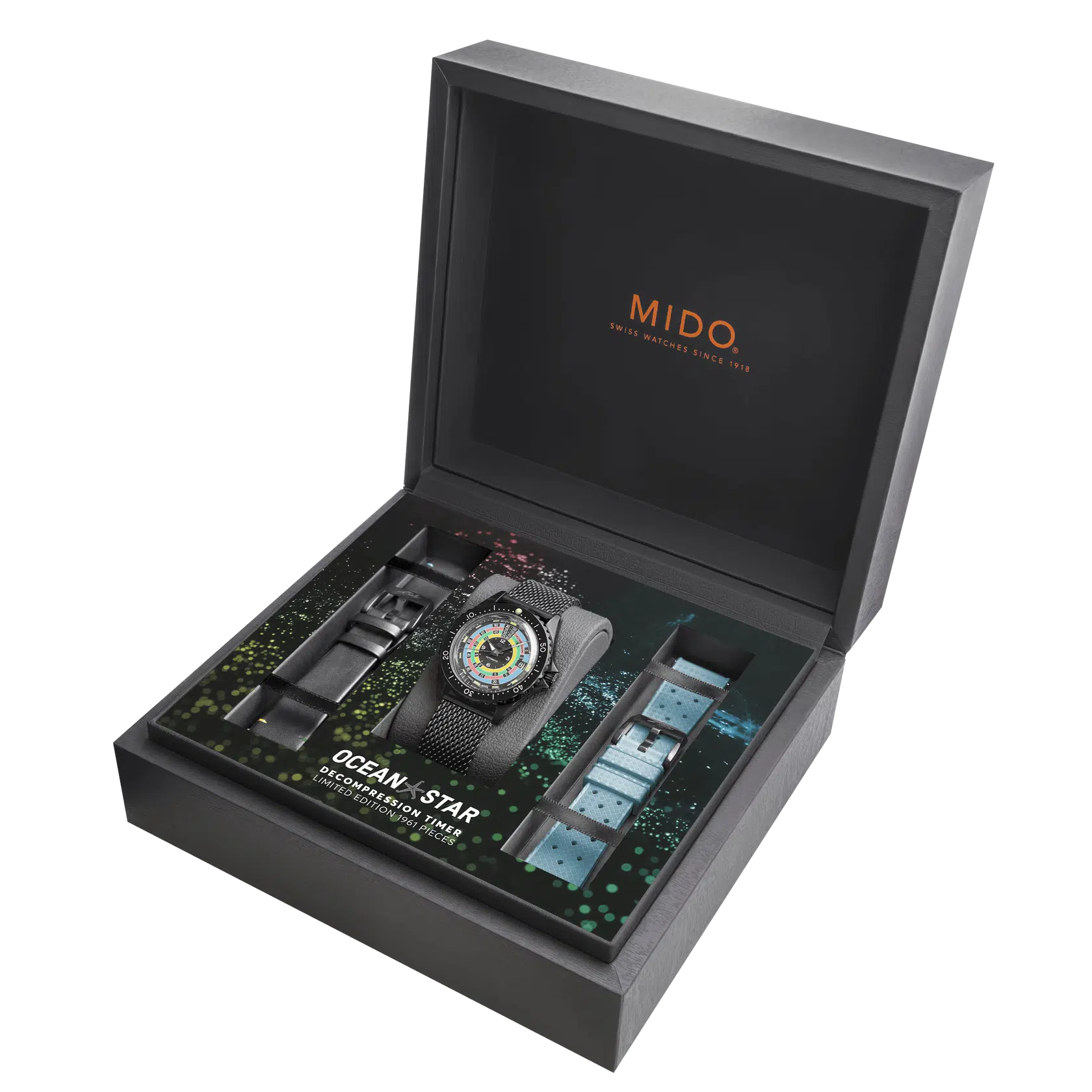 MIDO rende omaggio alla collezione Ocean Star. Ispirandosi al passato, l’Ocean Star Tribute reinterpreta i codici estetici dei modelli da immersione degli anni Sessanta del Novecento e ne riprende tutti i segni particolari: è dotato di un movimento automatico Calibro 80 fino a 80 ore di riserva di carica, impermeabile fino a una pressione di 20 bar (200 metri), e il suo bracciale esclusivo conferisce all’orologio un confort assoluto.