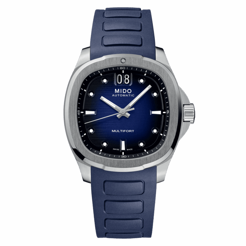 Un brillante ritorno di fiamma! Nata dallo straordinario patrimonio di MIDO, la cassa a forma di TV torna al centro della scena per il Multifort TV Big Date, tanto intenso quanto preciso, grazie al suo formidabile movimento meccanico. Il design moderno e dinamico di questo orologio svizzero è sottolineato da un quadrante spazzolato orizzontale di grande impatto e dalla sua funzione distintiva: la scritta BIG DATE a ore 12. Il suo formidabile movimento automatico di ultima generazione, il Calibro 80, è dotato di una spirale high-tech in Nivachron™ che offre un’eccezionale resistenza agli urti e ai campi magnetici.