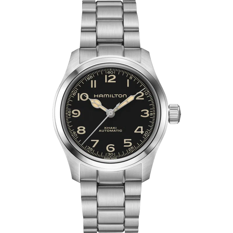 L’originale Murph, icona del mondo del cinema, viene rivisitato in chiave moderna. Su un quadrante nero si stagliano numeri leggermente bombati, per una leggibilità ottimale, e sfere a forma di cattedrale, che gli conferiscono un tocco vintage. L’originale versione da 38 mm è ora disponibile con un bracciale in metallo spazzolato a 3 maglie, che saprà soddisfare tanto gli amanti di Hamilton quanto quelli di Hollywood.