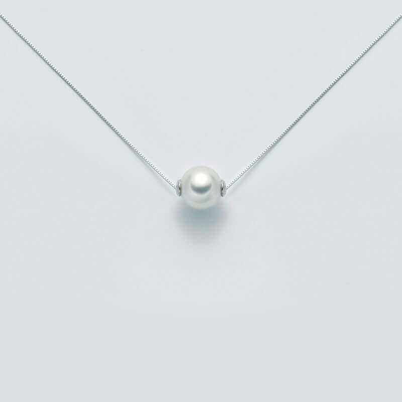 Essenziale collanna in oro bianco 750/000 ( 18 carati ) con perla naturale coltivata in Giappone in acqua di mare.