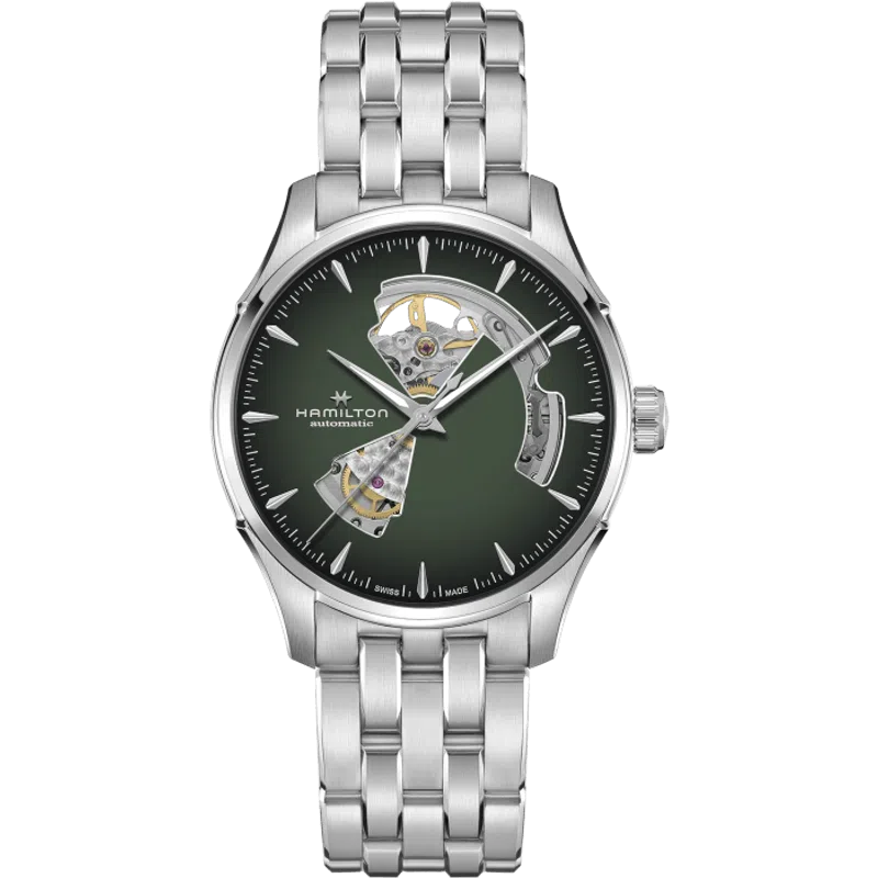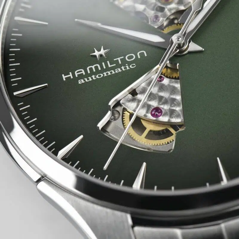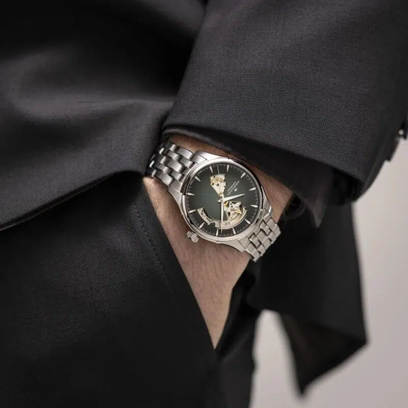 Un vivace quadrante sfumato focalizza l’attenzione sulle precise traforature del Jazzmaster Open Heart. Garantendo uno sguardo all’affascinante movimento interno, il suo stile contemporaneo è unico e versatile.