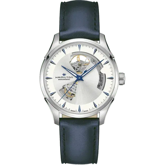 L’orologeria classica incontra il design contemporaneo in questo Jazzmaster Open Heart Automatic blu e argento. Le precise traforature del quadrante da 40 mm permettono di ammirare il movimento interno prodotto in Svizzera e donano a questo segnatempo sofisticato grande personalità.