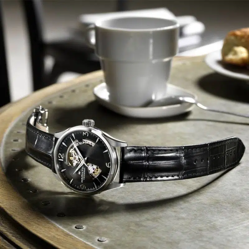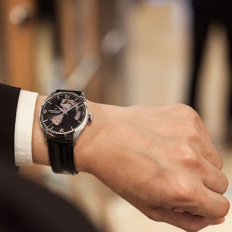 Il Jazzmaster Viewmatic Skeleton Lady rivela la spirale, lo scappamento e il bariletto del movimento H-20-S mentre scandiscono il tempo in perfetta sinergia. Il quadrante scheletrato lascia poco spazio all’immaginazione: Hamilton mette in primo piano tutto il suo know-how.