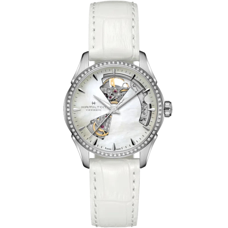 Il Jazzmaster Open Heart da 36 mm è un perfetto connubio di raffinatezza contemporanea e savoir-faire artigianale d’eccezione. Il disegno traforato con la massima precisione consente di ammirare il movimento automatico Swiss-made Hamilton in azione mentre scandisce il tempo e accompagna ogni momento importante della nostra vita. Le molteplici combinazioni di quadranti e cinturini realizzati con materiali di alta qualità offrono alla donna moderna un’ampia scelta.