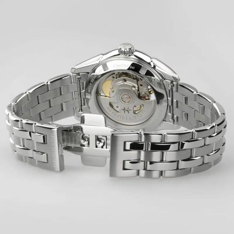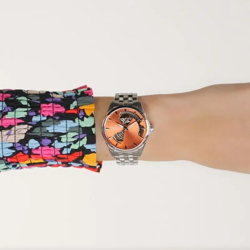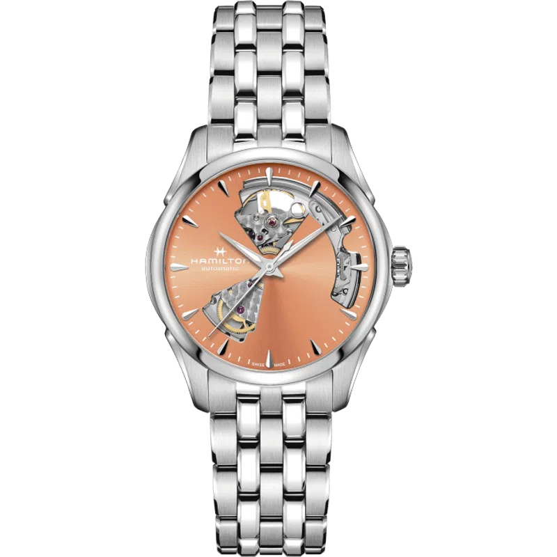 Il Jazzmaster Open Heart 36 mm, con il suo quadrante traforato albicocca effetto soleil, punta tutto sulla precisione e rivela al contempo la raffinata bellezza del movimento meccanico al suo interno. Mettendo in risalto il movimento automatico H-10, con una riserva di carica di 80 ore e spirale in Nivachron™, il Jazzmaster Open Heart vanta un sofisticato bracciale in acciaio, che incarna il savoir-faire in continua evoluzione di Hamilton e l’attenzione ai dettagli.