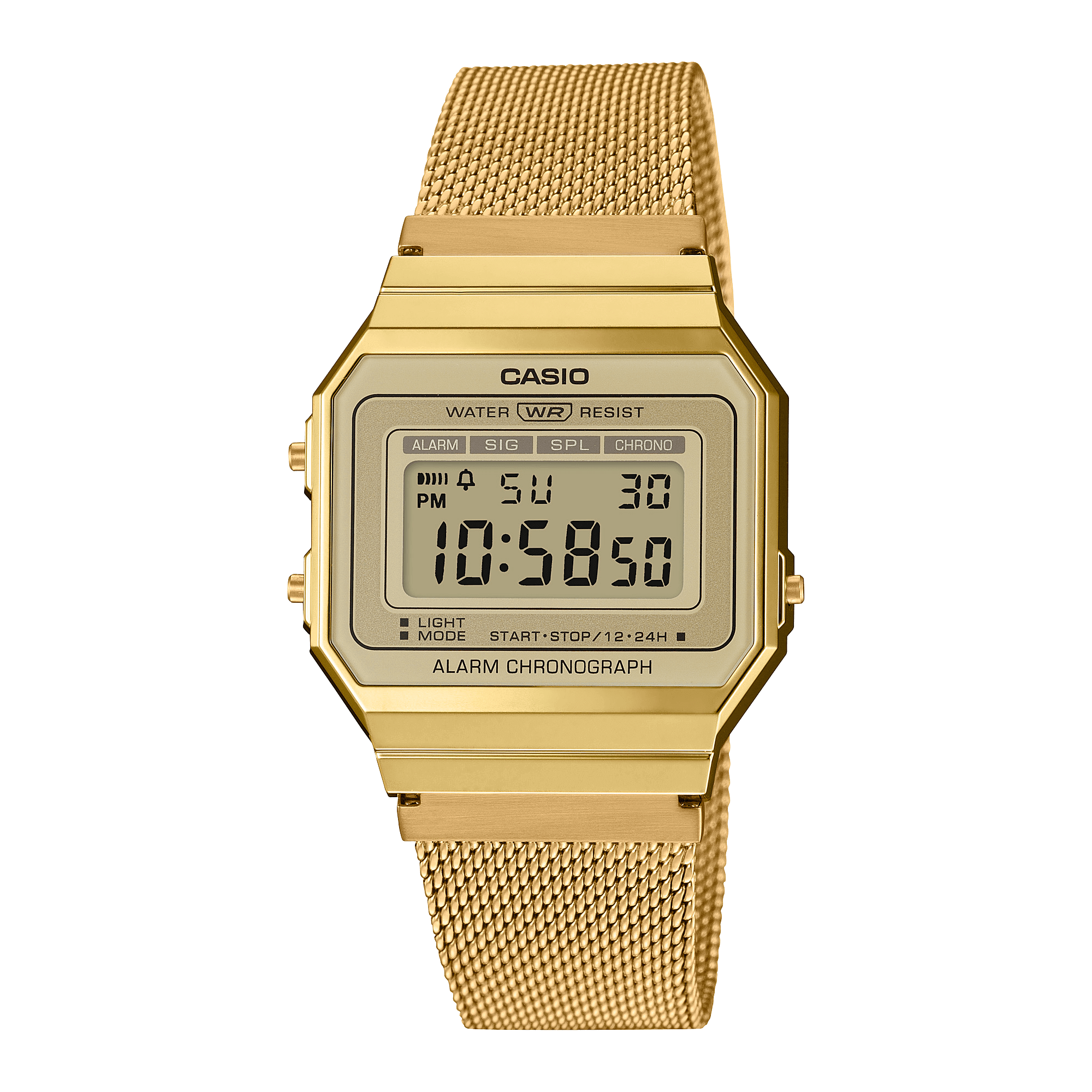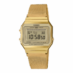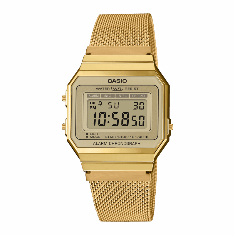 Collezione Vintage • CASSA SUPER SOTTILE • Impermeabile • Retroilluminazione LED • Cronometro da centesimi di secondo • Promemoria sonoro giornaliero • Cinturino a maglie in acciaio inox