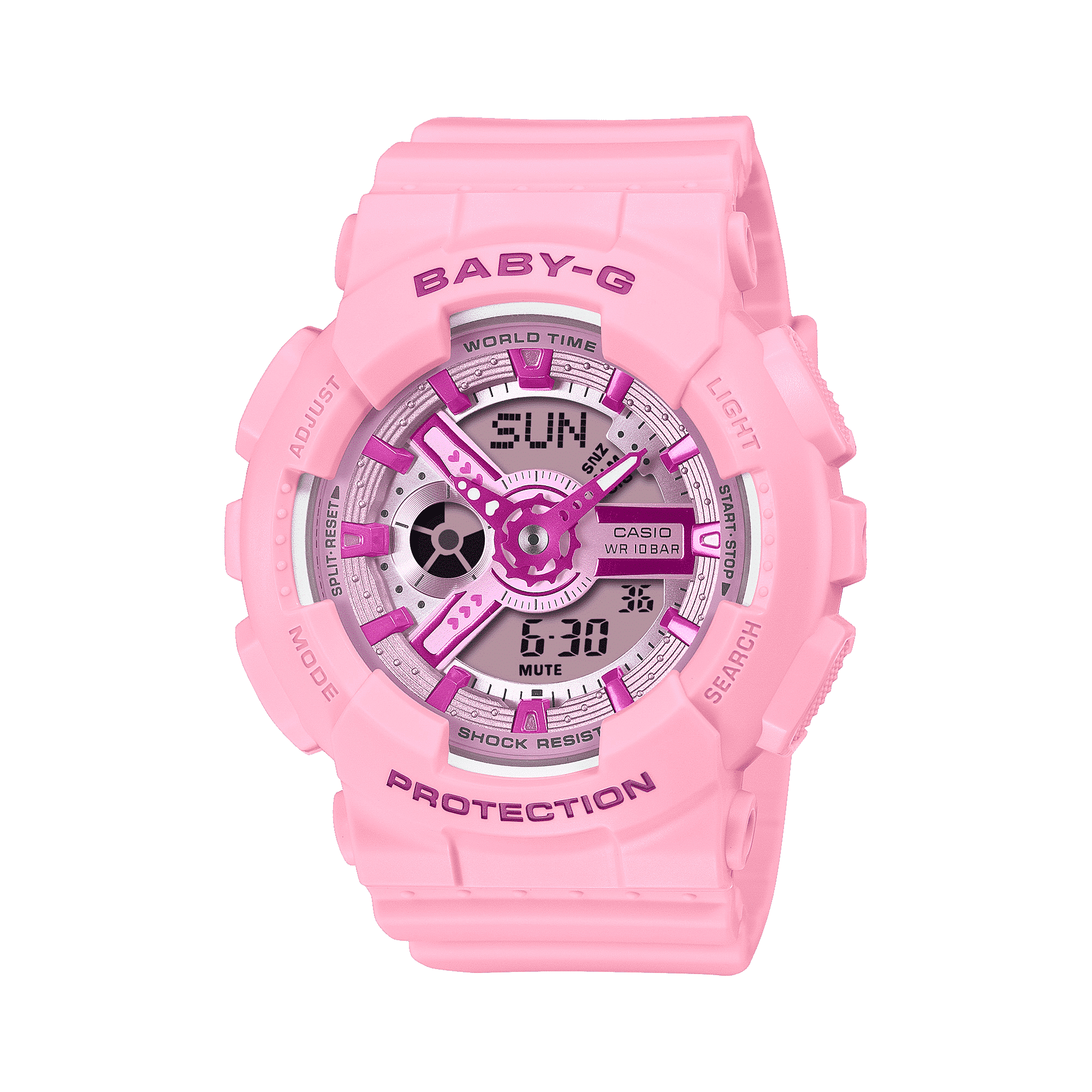 Iniziamo con il popolare modello BA-110, quindi lo vestiamo con un quadrante dimensionale per crearne uno accattivante che metta in risalto la complessa interazione di varie parti. La lancetta delle ore e i componenti del ponte ispirati agli ingranaggi sono caratterizzati da un delicato motivo a cuore. Questi dettagli singolari rendono questo accessorio colorato in pieno stile anni 2000.