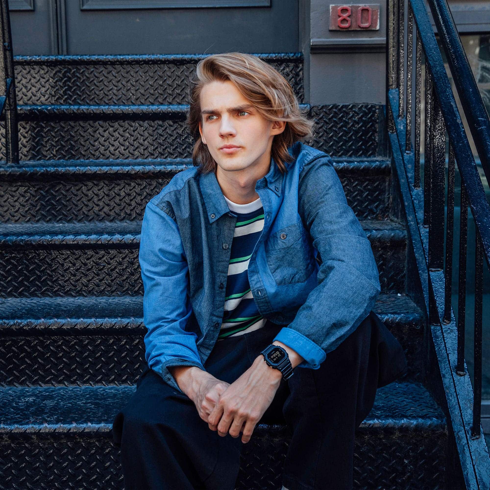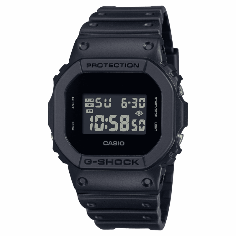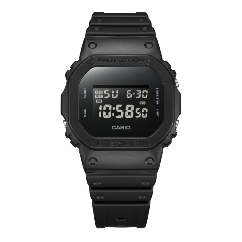 Questo orologio è completamente nero e la sua texture semplice è enfatizzata dal color block. Il colore opaco sul modulo e sul cinturino dell’orologio non solo consente una semplice combinazione di colori, ma enfatizza anche la forma iconica del primo G-SHOCK. Grazie al suo design solido e distintivo, questo modello può essere indossato per essere sempre alla moda.