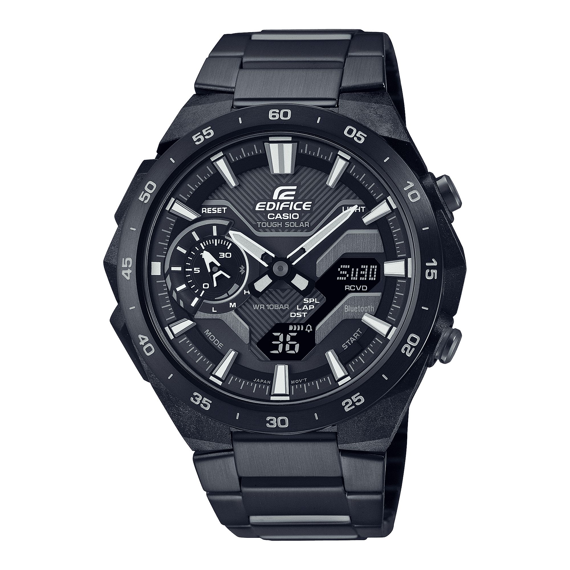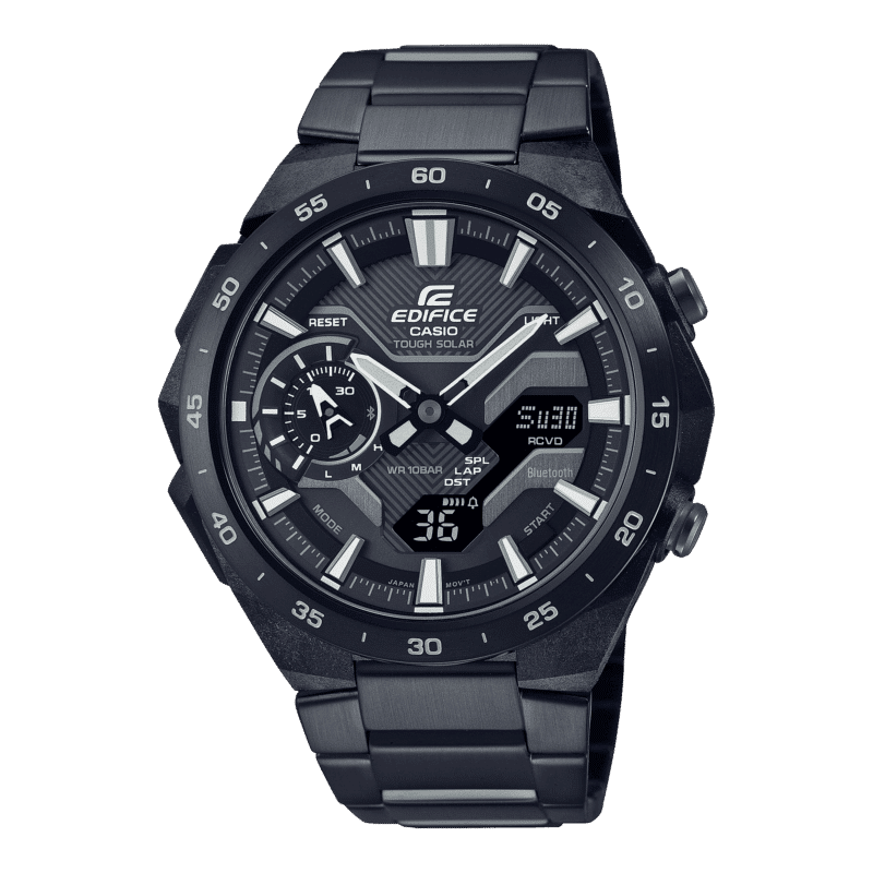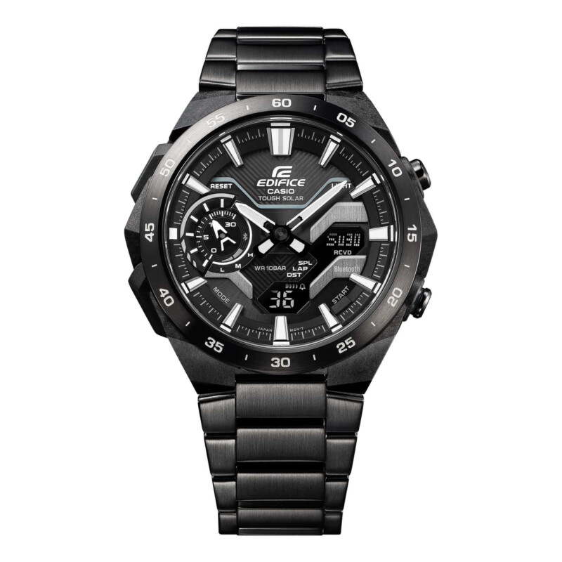 Vivi tutta l’adrenalina di una corsa su un’auto di Motorsport con EDIFICE WINDFLOW ECB-2200DD, il cronografo analogico digitale ispirato alle piste automobilistiche.