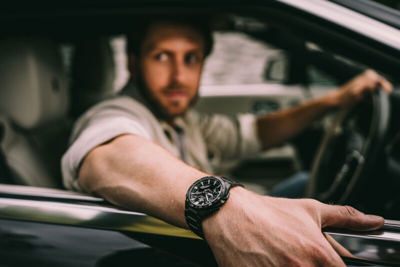 La vista laterale, progettata per evocare l’aria che passa attraverso gli alettoni di un’auto da corsa, e le forme affilate e aerodinamiche del quadrante meccanico sono un chiaro richiamo alla velocità assoluta. La cassa in resina rinforzata con fibra di carbonio assicura la massima resistenza senza appesantire l’orologio, che risulta sempre pratico e leggero da indossare.