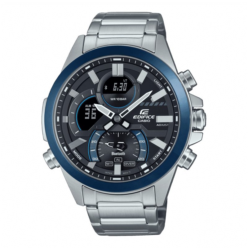 Questo modell permette la sincornizzazione con lo smartphone tramite connessione Bluetooth® e l’accesso all’app CASIO WATCHES per svelare tutte le funzionalità a disposizione. La gestione tramite app permette un utilizzo senza toccare l’orologio. Sviluppato per soddisfare le esigenze dei team motoristici, il timer di programmazione si sincronizza con l’app del calendario dello smartphone per inviare tutti i dati di programmazione al telefono, visualizzando gli orari di inizio e fine sul display LCD dell’orologio. L’orologio è inoltre dotato di luce LED automatica che si accende semplicemente inclinando il polso.