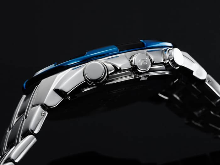 Ampio cronografo standard. La lunetta tridimensionale, la robusta struttura del quadrante e la colorazione creano un design potente.