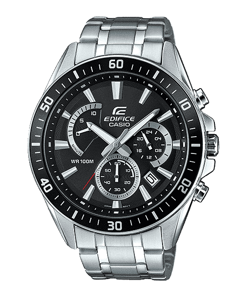 Ampio cronografo EDIFICE standard. Presenta un retrogrado a ore 10. La lunetta nera e il quadrante vantano un design audace.