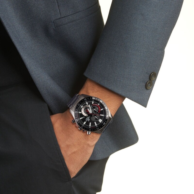 Il classico cronografo EDIFICE è un’audace combinazione di dettagli raffinati e design oversize.