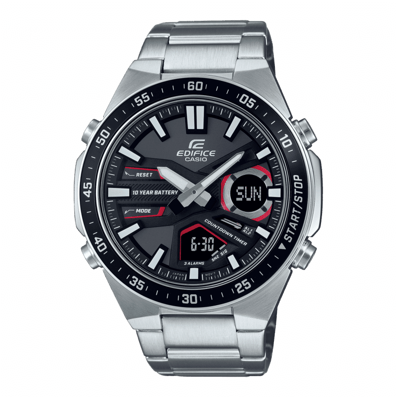 Concentrati sul tuo tempo libero. Acquista un orologio analogico-digitale con una batteria della durata di 10 anni. Il design del quadrante offre profondità e dimensionalità migliorate per un look dinamico e sportivo. I quadranti digitali incassati offrono numerose funzioni, tra cui ora internazionale, cronometro da 1/100 secondi e timer per conto alla rovescia.