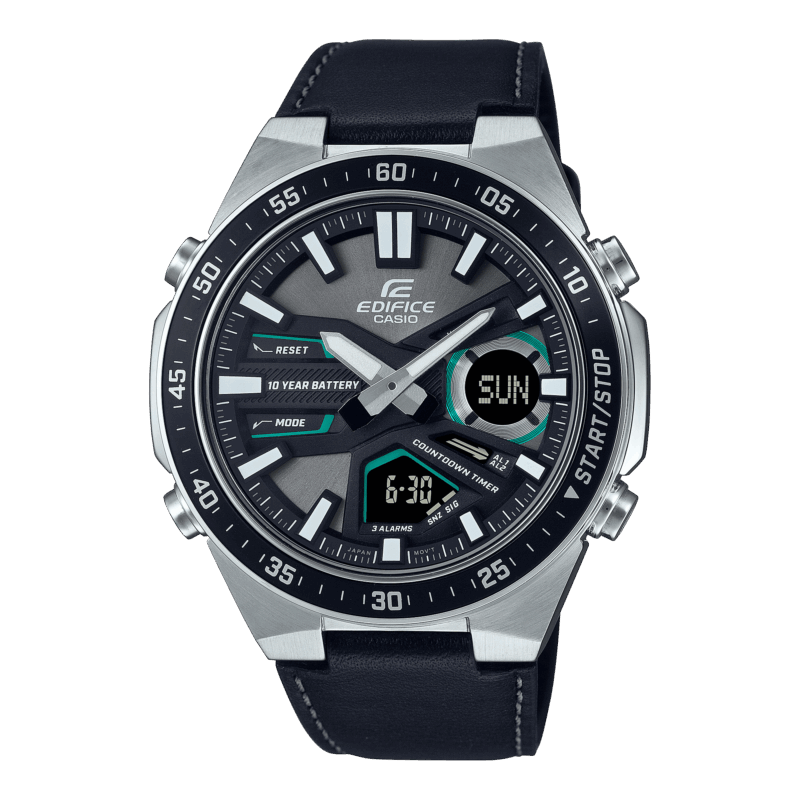 Concentrati sul tuo tempo libero. Acquista un orologio analogico-digitale con una batteria della durata di 10 anni. Il design del quadrante offre profondità e dimensionalità migliorate per un look dinamico e sportivo. I quadranti digitali incassati offrono numerose funzioni, tra cui ora internazionale, cronometro da 1/100 secondi e timer per conto alla rovescia. Il cinturino in vera pelle conferisce all’orologio un ulteriore un tocco di stile.