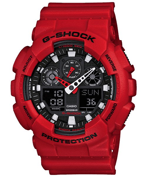 Un modello che combina analogico e digitale, apprezzato per il suo quadrante ampio. La cassa e il cinturino con finitura opaca sono caratterizzati dai colori G-SHOCK nero e rosso. Quattro finestre LCD e un tachimetro sono simmetricamente posizionati sul quadrante per creare un design pulito. Vanta un’eccellente praticità, con un cronometro di misurazione al millisecondo, un tachimetro e una resistenza magnetica JIS classe 1. Un modello robusto che risplende sulla scena della street fashion.