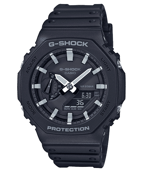 G-SHOCK, il brand di orologi indistruttibili, si evolve in un’infinita ricerca di estrema forza e resistenza. Il modello 2100 è una combinazione di digitale-analogico che eredita il concetto dei modelli DW-5000C di prima generazione, aggiornandolo ai giorni nostri con un design ottagonale. Inoltre, l’orologio raggiunge uno spessore di 11,8 mm grazie a una resina fine estremamente rigida, irrobustita dalla fibra di carbonio.
