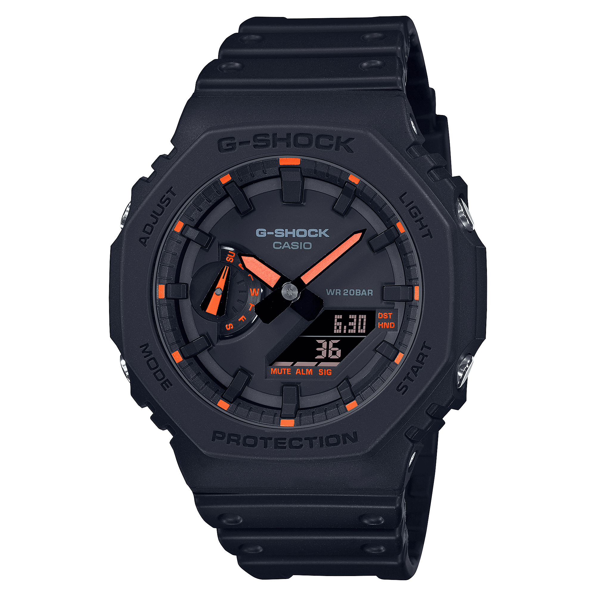 G-SHOCK, il brand di orologi indistruttibili, si evolve in un’infinita ricerca di estrema forza e resistenza. Il modello 2100 è una combinazione di digitale-analogico che eredita il concetto dei modelli DW-5000C di prima generazione, aggiornandolo ai giorni nostri con un design ottagonale. Inoltre, l’orologio raggiunge uno spessore di 11,8 mm grazie a una resina fine estremamente rigida, irrobustita dalla fibra di carbonio. L’orologio inoltre presenta dettagli fluo, per esaltare il tuo look!