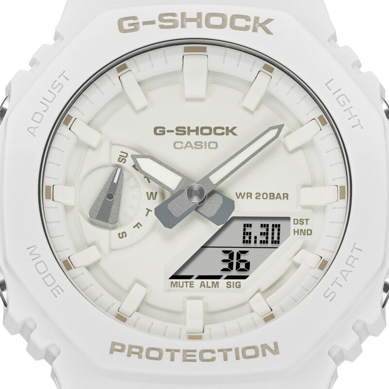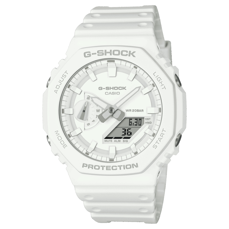 Dai il benvenuto alla serie G-SHOCK Tone-on-tone dallo stile monocromo con colori vivaci e brillanti. Il modello GA-2100 con la cassa ottagonale è reinterpretato in un design monocromatico disponibile in tre colori di tendenza: azzurro, bianco e lime.