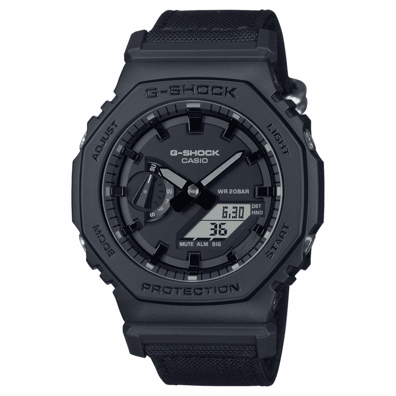 Pratico e allo stesso tempo attento alla natura, questo G-SHOCK con cassa in resina e cinturino in tessuto è perfetto per tutte le esigenze.