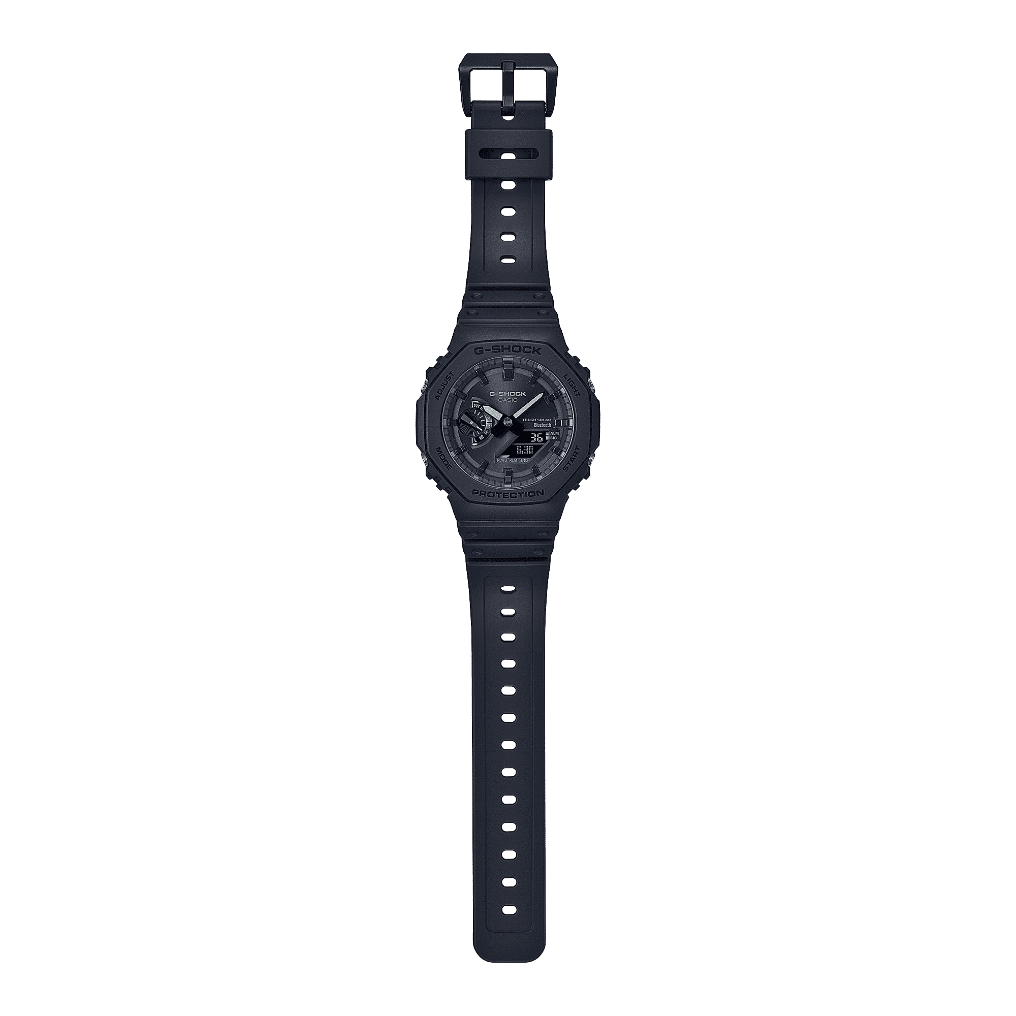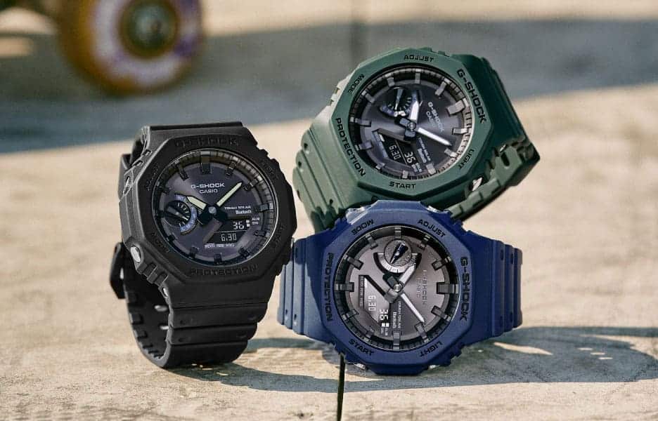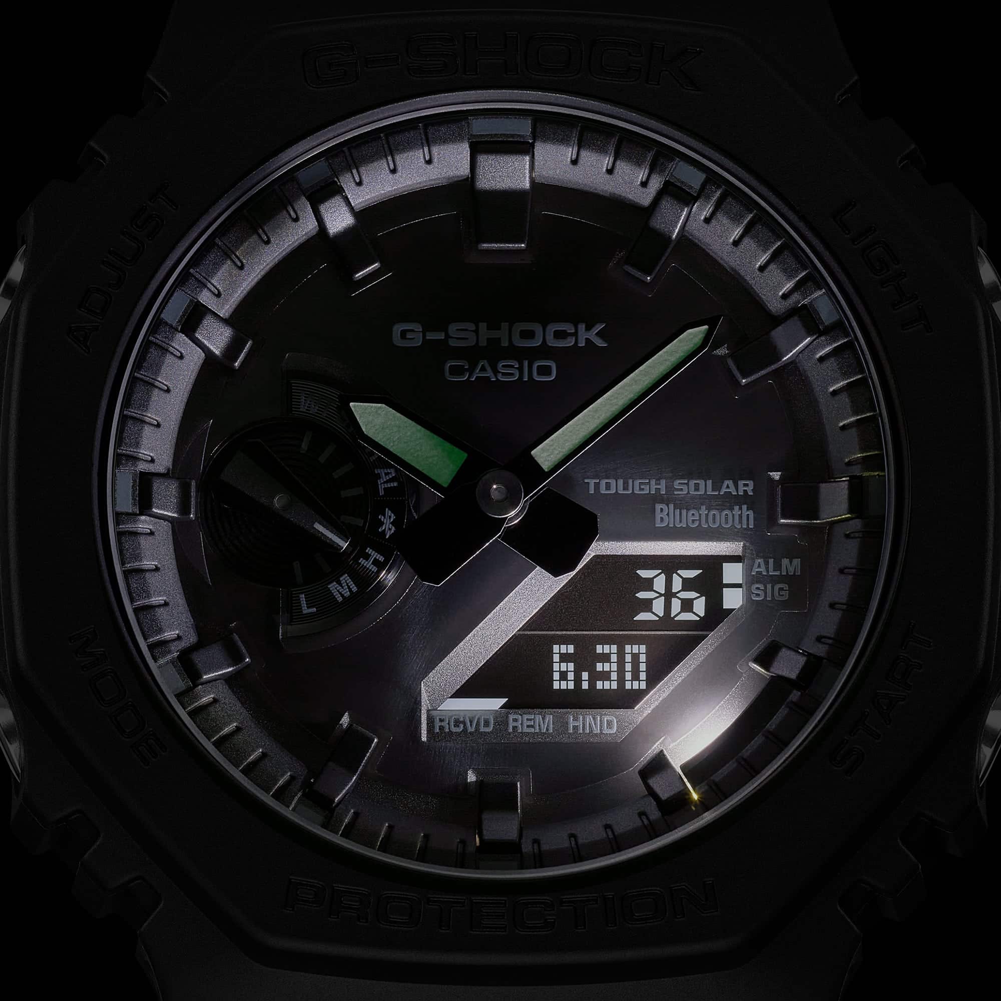 GA-B2100, una novità ed evoluzione dell’amata cassa ottagonale. Grazie alla connessione Bluetooth® e al sistema di ricarica solare, i nuovi orologi GA-B2100 offrono un alto livello di praticità. La connessione Bluetooth® consente infatti di regolare l’ora con la massima precisione e semplicità tramite smartphone, mentre il sistema Tough Solar permette all’orologio di ricaricarsi grazie all’energia solare senza dover sostituire regolarmente la batteria.