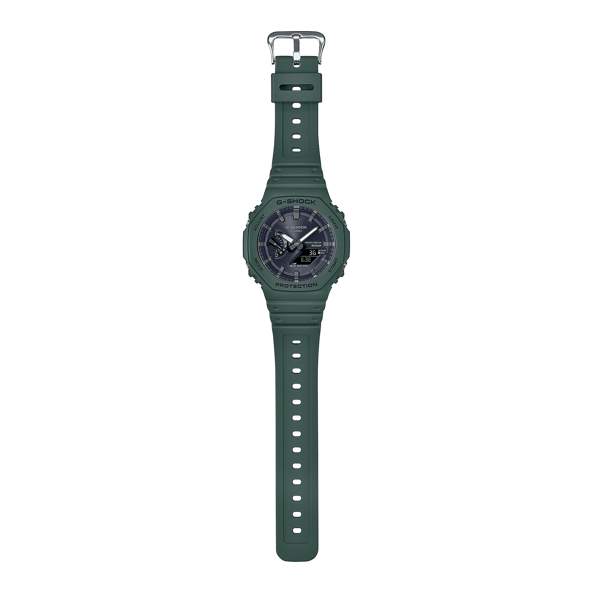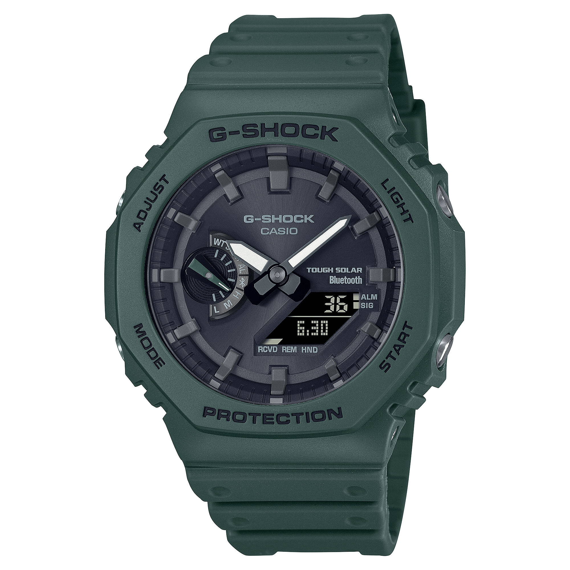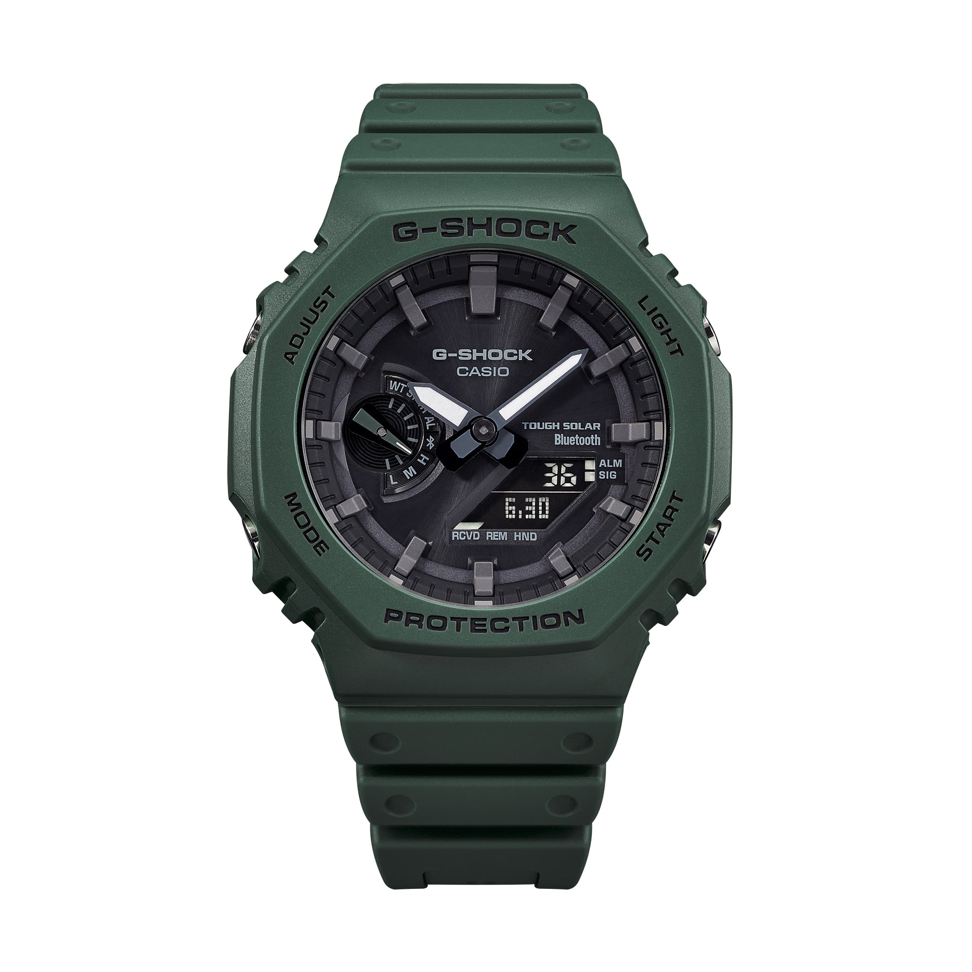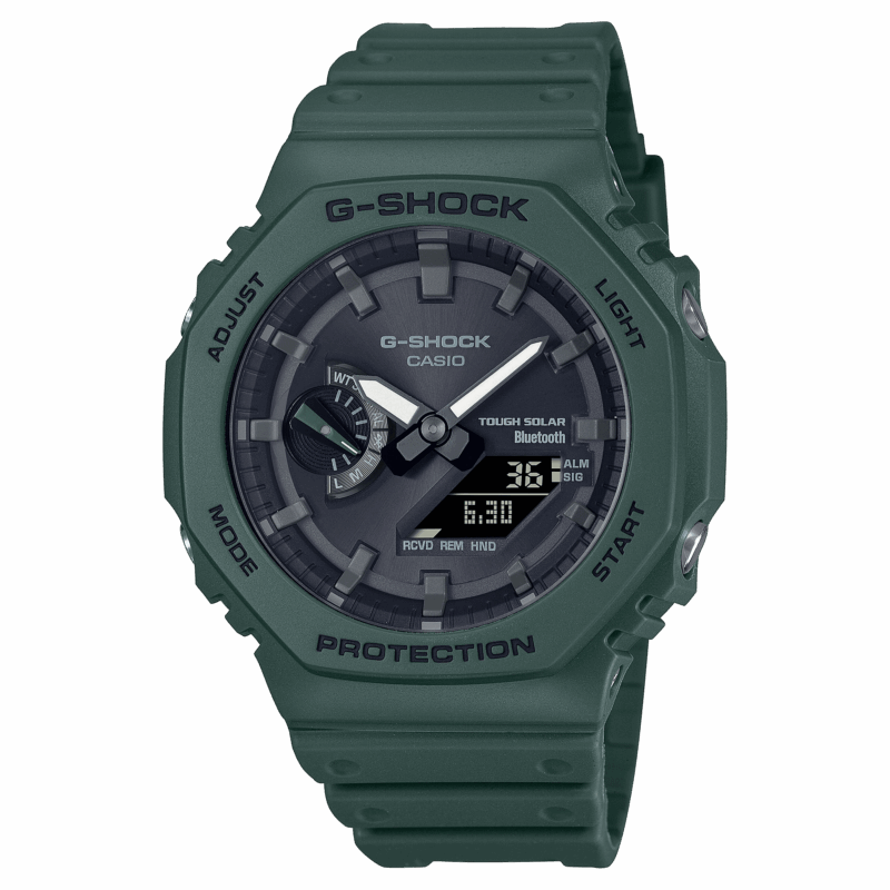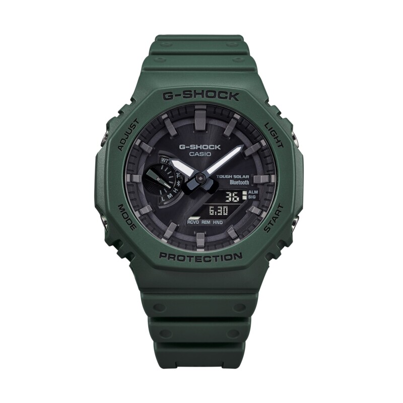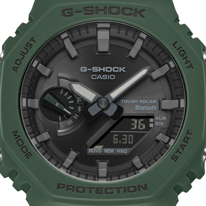GA-B2100, una novità ed evoluzione dell’amata cassa ottagonale. Grazie alla connessione Bluetooth® e al sistema di ricarica solare, i nuovi orologi GA-B2100 offrono un alto livello di praticità. La connessione Bluetooth® consente infatti di regolare l’ora con la massima precisione e semplicità tramite smartphone, mentre il sistema Tough Solar permette all’orologio di ricaricarsi grazie all’energia solare senza dover sostituire regolarmente la batteria.