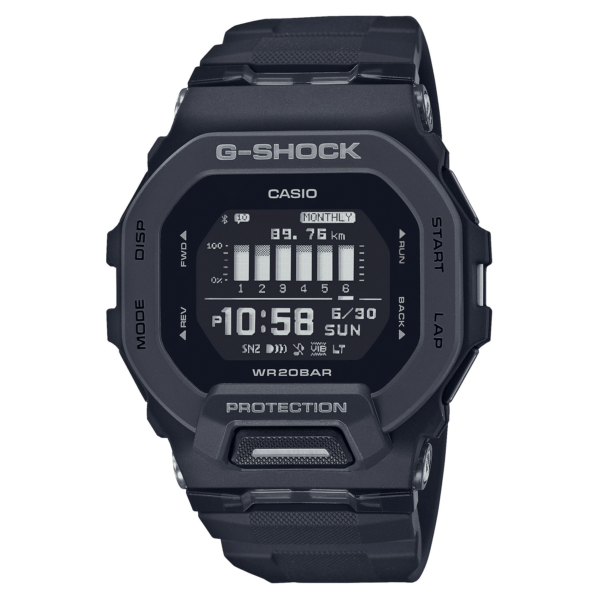 Dai inizio al tuo piano di allenamento con la linea G-SQUAD degli orologi G-SHOCK. Questi modelli sono caratterizzati da un design a cassa quadrata con colori scelti per adeguarsi agli allenamenti più estremi. Le fessure laterali della lunetta consentono al colore della cassa interna di essere visibile, evidenziando esattamente quanto è sottile questo orologio. Il pulsante della luce è posizionato sulla parte anteriore della cassa per un facile accesso e per garantire una facile lettura durante gli allenamenti notturni. Accedi al GPS dello smartphone tramite Bluetooth® per una precisa misurazione dell’accelerometro. Tutte le informazioni di cui hai bisogno sono a portata di mano: distanza, velocità e ritmo, nonché letture automatiche del giro per tenere traccia dei tempi di corsa per le distanze impostate. Il display include le calorie bruciate, un contapassi, un timer di intervallo e un timer di giro per tenere traccia del tuo allenamento quotidiano. Inoltre, utilizza l’app per controllare i registri e la cronologia delle attività dall’orologio. Grazie ai fori di regolazione extra nel morbido cinturino in uretano per una vestibilità di qualità e precisione, potrai sfruttare al massimo la funzionalità e il comfort. Disponibile in giallo lime, nero o blu navy, dacci dentro con il G-SQUAD più sottile di sempre!