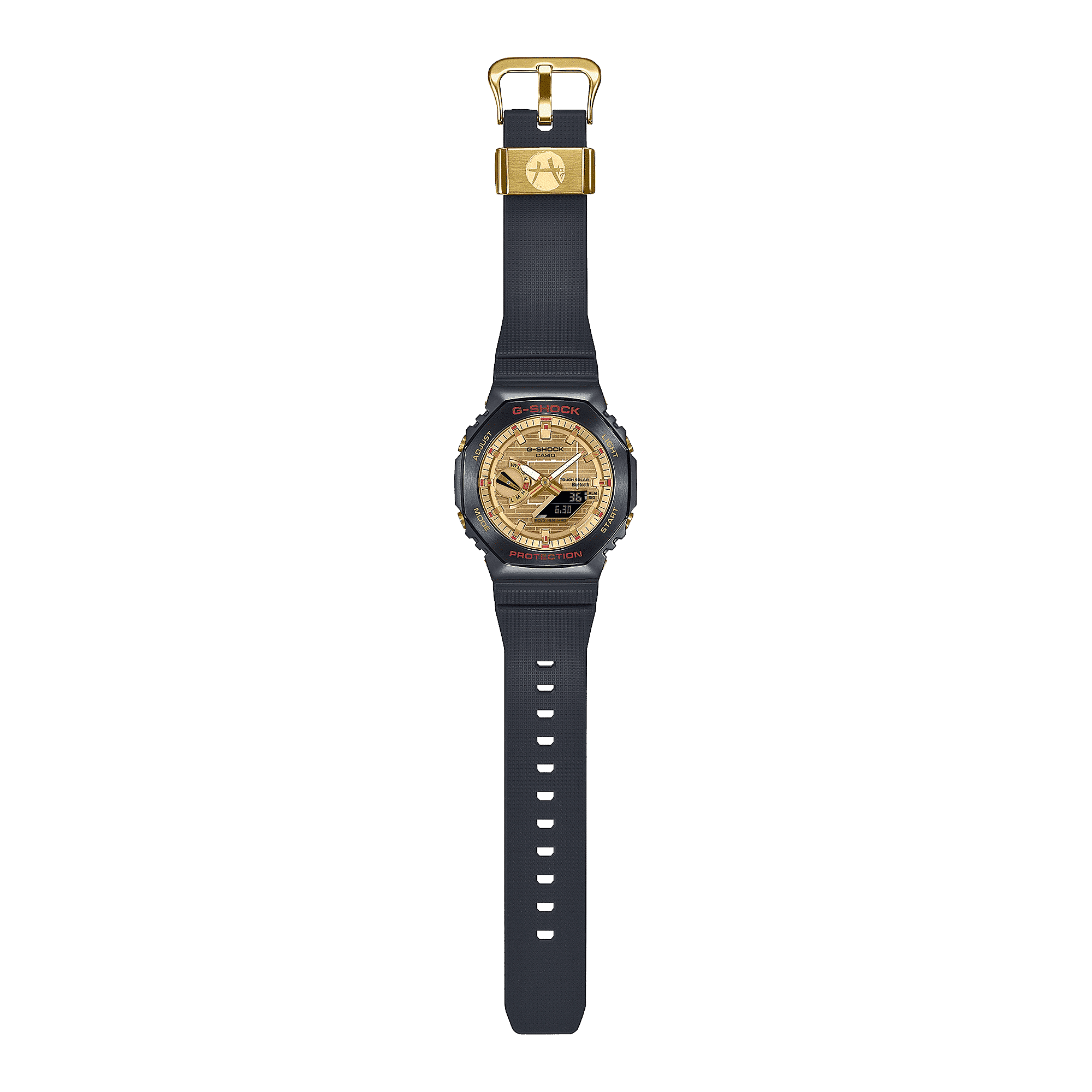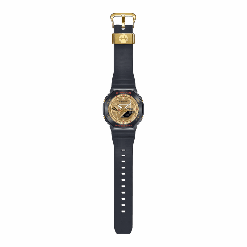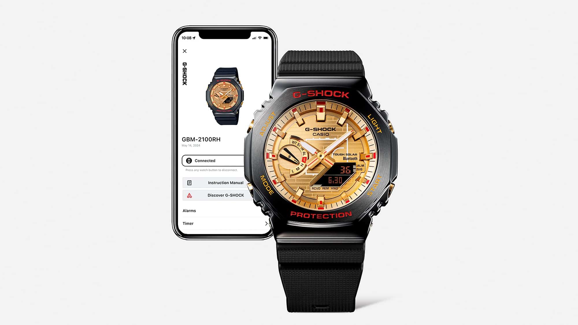 Questo collaboration model si basa sulla cassa GBM-2100, con lunetta metallica, ricarica solare e connessione Bluetooth®. Il rosso, colore del marchio G-SHOCK che evoca anche la passione di Hachimura per il gioco, è stato aggiunto per esaltare il colore oro del quadrante, che presenta il motivo di un campo da basket. Il cinturino nero mette in risalto il contrasto del quadrante dell’orologio e riunisce il design per un segnatempo che trasmette concentrazione e forza.