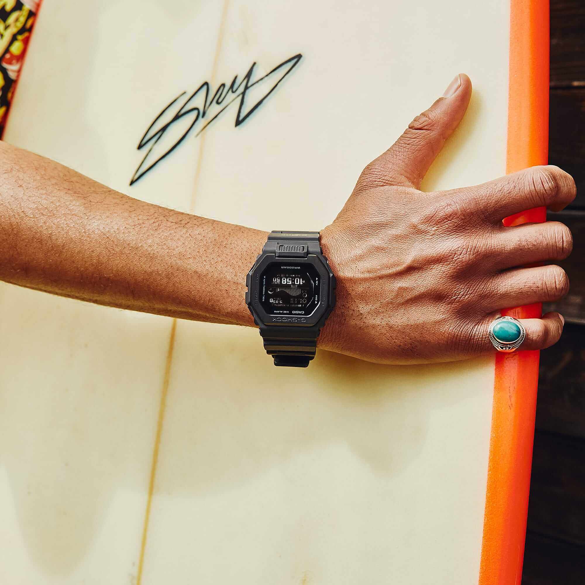 Cavalca l’onda con G-LIDE, la collezione G-SHOCK pensata per gli amanti degli sport acquatici. Con un design ispirato ai colori dell’oceano, il modello GBX-100 è dotato di tecnologia Bluetooth per offrire direttamente sul polso tutte le informazioni di cui i surfisti hanno bisogno.
