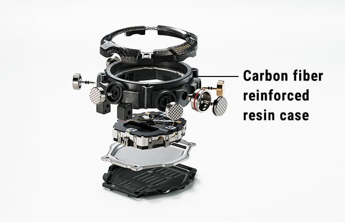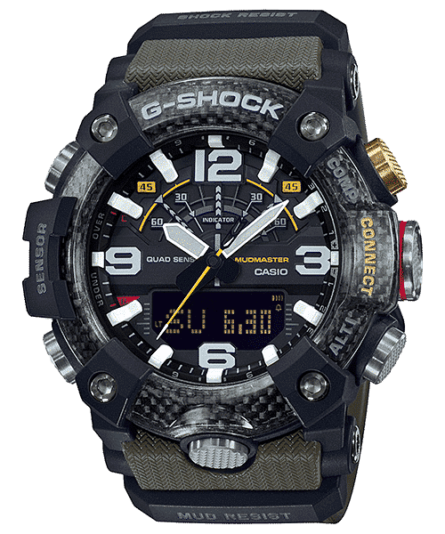 Si tratta di un modello della serie G-Shock Mudmaster, progettato per l’uso in ambienti estremi con macerie, sporcizia e detriti e utilizza materiali in carbonio. L’uso di carbonio ad alta rigidità sulla cassa tiene a bada i danni e le deformazioni e garantisce un elevato livello di ermeticità e resistenza agli urti. Questo modello è inoltre dotato di un filtro che protegge contro l’ingresso di fango, di un pannello posteriore in acciaio inossidabile e di un rivestimento posteriore in resina fine resistente agli urti, incorporato con fibre di vetro, che gli conferiscono un elevato livello di resistenza alla polvere e al fango. Inoltre la lunetta utilizza tre strati di resina fine con inserti in fibra di carbonio ed è progettata per assomigliare a un bidone di benzina come quelli che si possono trovare sui veicoli fuoristrada. Dal punto di vista delle funzioni, questo modello è dotato di bussola, altimetro/barometro, lettore di temperatura e pedometro. Oltre ad essere in grado di regolare facilmente l’ora utilizzando l’app G-Shock dedicata, sono disponibili molte altre utili funzioni, tra cui quella di Mission Log, che registra automaticamente i dati sull’altitudine dell’app ricavati dall’orologio e dai dati del percorso ottenuti dallo smartphone. Si tratta di un orologio resistente che aiuta a prendere decisioni rapide e a intraprendere azioni precise.