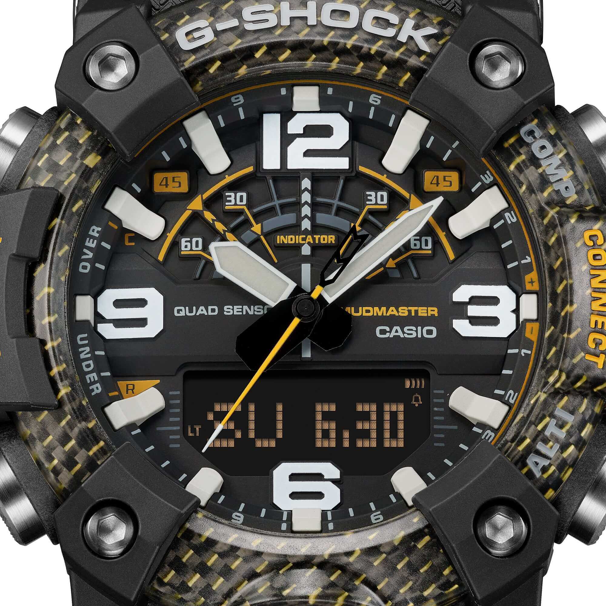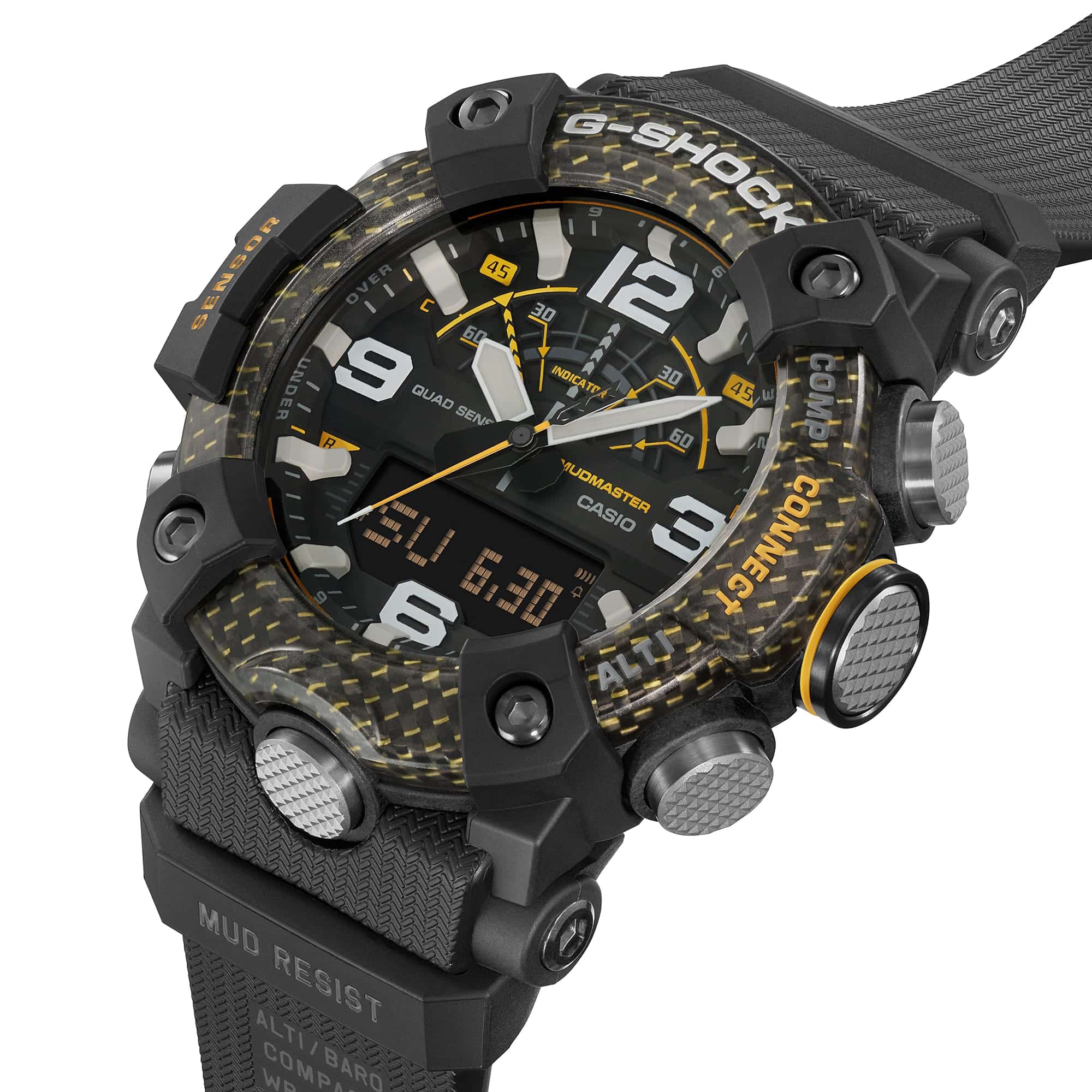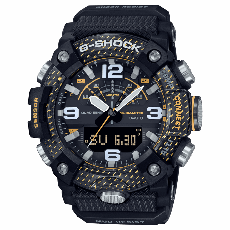 Affronta anche le sfide più difficili e cattura l’attenzione con un orologio estremamente resistente e caratterizzato da una combinazione di colori audace e accattivante.Il nuovo MASTER OF G segna un nuovo livello di evoluzione tecnologica, arricchito da un design robusto con accenti di colore giallo, tonalità tipicamente utilizzata per i soccorsi di emergenza.La cassa del GG-B100 MUDMASTER è realizzata in fibra di carbonio, per garantire un altissimo livello di resistenza agli urti. Questo orologio è inoltre dotato di uno speciale filtro che protegge contro l’ingresso di fango, di un pannello posteriore in acciaio inossidabile e di un rivestimento posteriore in resina fine resistente agli urti, incorporato con fibre di vetro, che gli conferiscono un elevato livello di resistenza alla polvere e al fango. Anche per la lunetta sono stati utilizzati tre strati di resina fine con inserti in fibra di carbonio. Questo design robusto e resistente è impreziosito da un colore giallo brillante. Pratico e funzionale, questo orologio è dotato di bussola digitale, altimetro/barometro, termometro e contapassi. Oltre alla facile regolazione dell’ora con l’app G-SHOCK dedicata, sono disponibili molte altre funzioni utili, tra cui il registro missione, che registra automaticamente i dati sull’altitudine acquisiti dall’orologio e i dati del percorso acquisiti dallo smartphone.
