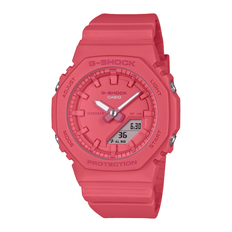 Il modello è disponibile in colori vivaci, come turchese, rosa e bianco, mentre il quadrante incassato a ore 9 dell’originale GMA-S2100 viene abbandonato per un look essenziale e minimalista.