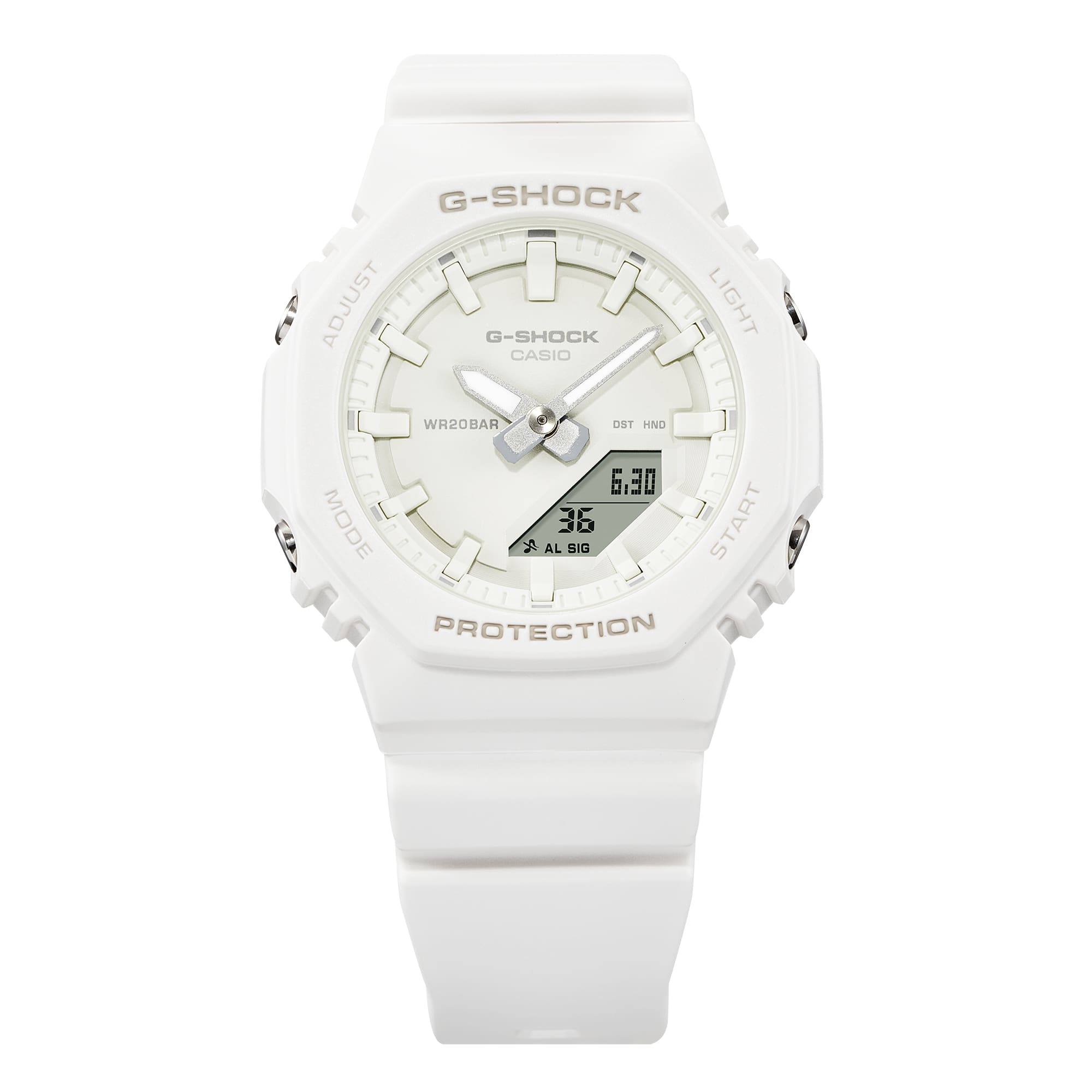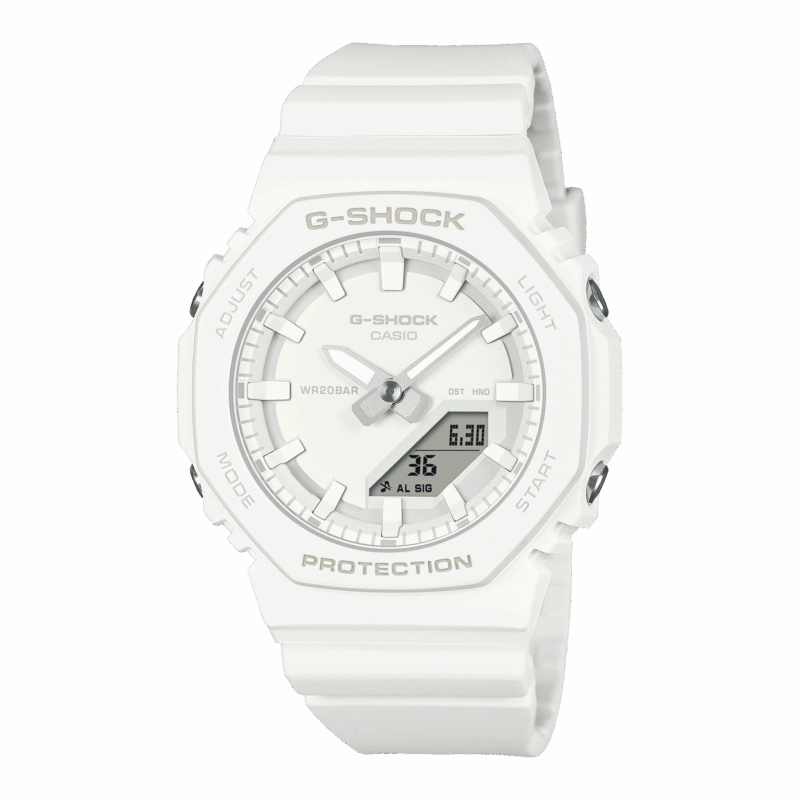 Il modello è disponibile in colori vivaci, come turchese, rosa e bianco, mentre il quadrante incassato a ore 9 dell’originale GMA-S2100 viene abbandonato per un look essenziale e minimalista.