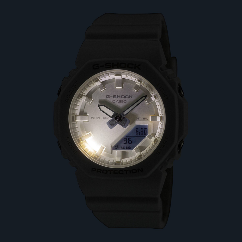 Scopri il modello GMA-P2100 della serie Tone-on-Tone ancora più compatto e di dimensioni ridotte rispetto alla serie GMA-S2100 per adattarsi ancora meglio ai polsi più piccoli.