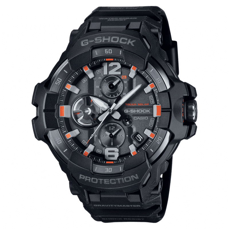La forma organica del GRAVITYMASTER GR-B300EC è ispirata agli aerei di nuova generazione e resa attraverso un design uniforme La struttura Carbon Core Guard e l’ampia superficie 3D garantiscono durata, leggibilità e vestibilità confortevole. Si può inoltre usufruire di tutte le funzioni pratiche, tra cui la doppia visualizzazione simultanea dell’ora in due città, una funzione di memoria del registro dei voli per registrare i percorsi effettuati e molto altro ancora.