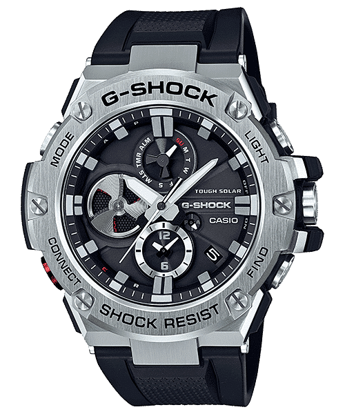 G-SHOCK, il brand di orologi indistruttibili, presenta un modello G-STEEL con cassa solida, cronografo con display analogico e cinturino in uretano progettato con un motivo ispirato alle pesanti lame dei motori a getto. Un motore a doppia bobina in un disco rotante posizionato a ore 9 sposta le lame del quadrante ed emana una bellezza funzionale. La struttura di protezione a strati e la tecnologia di montaggio ad alta densità hanno consentito al modulo di essere più piccolo e sottile, migliorando l’indossabilità e la qualità complessiva dell’orologio. È inoltre dotato di connettività Bluetooth® che consente una precisa misurazione del tempo tramite smartphone. La funzione Tough Solar consente di funzionare in modo stabile ed è dotata anche di funzioni pratiche come LED ad alta luminosità e doppio quadrante dell’ora internazionale.