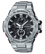 Un modello G-STEEL dotato di cronografo analogico e di cinturino in puro acciaio inossidabile, progettato con un motivo a lame per motori a reazione pesante. Un motore a doppia bobina in un disco rotante posizionato a ore 9 sposta le lame del quadrante ed emana una bellezza funzionale. Oltre alla funzione di attivazione/disattivazione del promemoria sonoro e all’utilizzo della rotazione per mostrare il cronometro, ecc., funziona anche come indicatore della batteria. La struttura di protezione a strati e la tecnologia di montaggio ad alta densità hanno consentito al modulo di essere più piccolo e sottile, migliorando l’indossabilità e la qualità complessiva dell’orologio. È inoltre dotato di connettività Bluetooth® che consente una precisa misurazione del tempo tramite smartphone. La funzione Tough Solar consente di funzionare in modo stabile ed è dotata anche di funzioni pratiche come LED ad alta luminosità e doppio quadrante dell’ora internazionale.