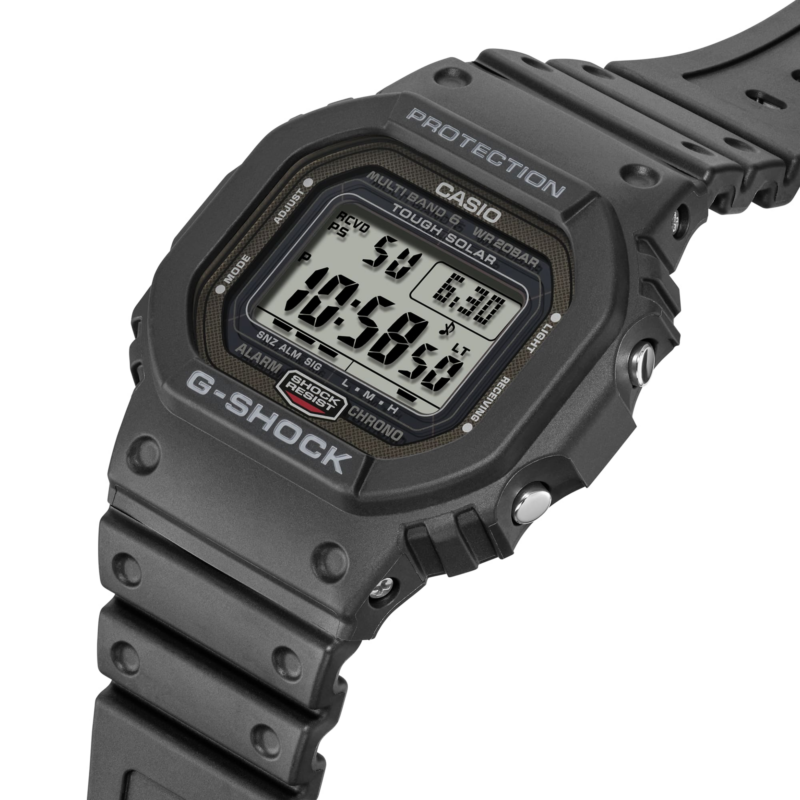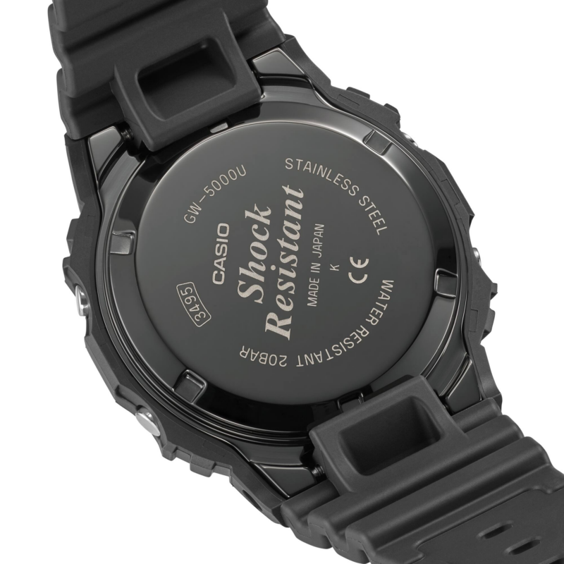 Perseguendo una maggiore robustezza ed ereditando il DNA del primo modello G-SHOCK (DW5000), il GW5000U-1 è costruito con una solida cassa in metallo e un fondello a vite. Questo orologio è inoltre dotato di una tecnologia avanzata, la Multi-Band 6, che riceve le onde radio standard da 6 stazioni in tutto il mondo. La cassa in metallo e il fondello a vite sono realizzati in DLC (diamond-like) per migliorare la resistenza all’usura, mentre il fondello a vite è lavorato a specchio per creare una finitura di lusso. Inoltre, il cinturino in resina utilizza un uretano morbido e comodo da indossare. Evoluto dal design originale di G-SHOCK, nato nel 1983, il GW5000U-1 è un modello raffinato che vanta tecnologia e finiture di alta qualità.