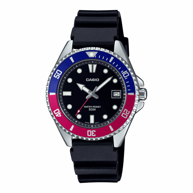 Questo orologio sportivo aggiunge una lunetta girevole unidirezionale al classico design composto da lancetta dei secondi, ore e minuti. Il cinturino in uretano è realizzato in resina a base biologica prodotta da materiali organici rinnovabili.