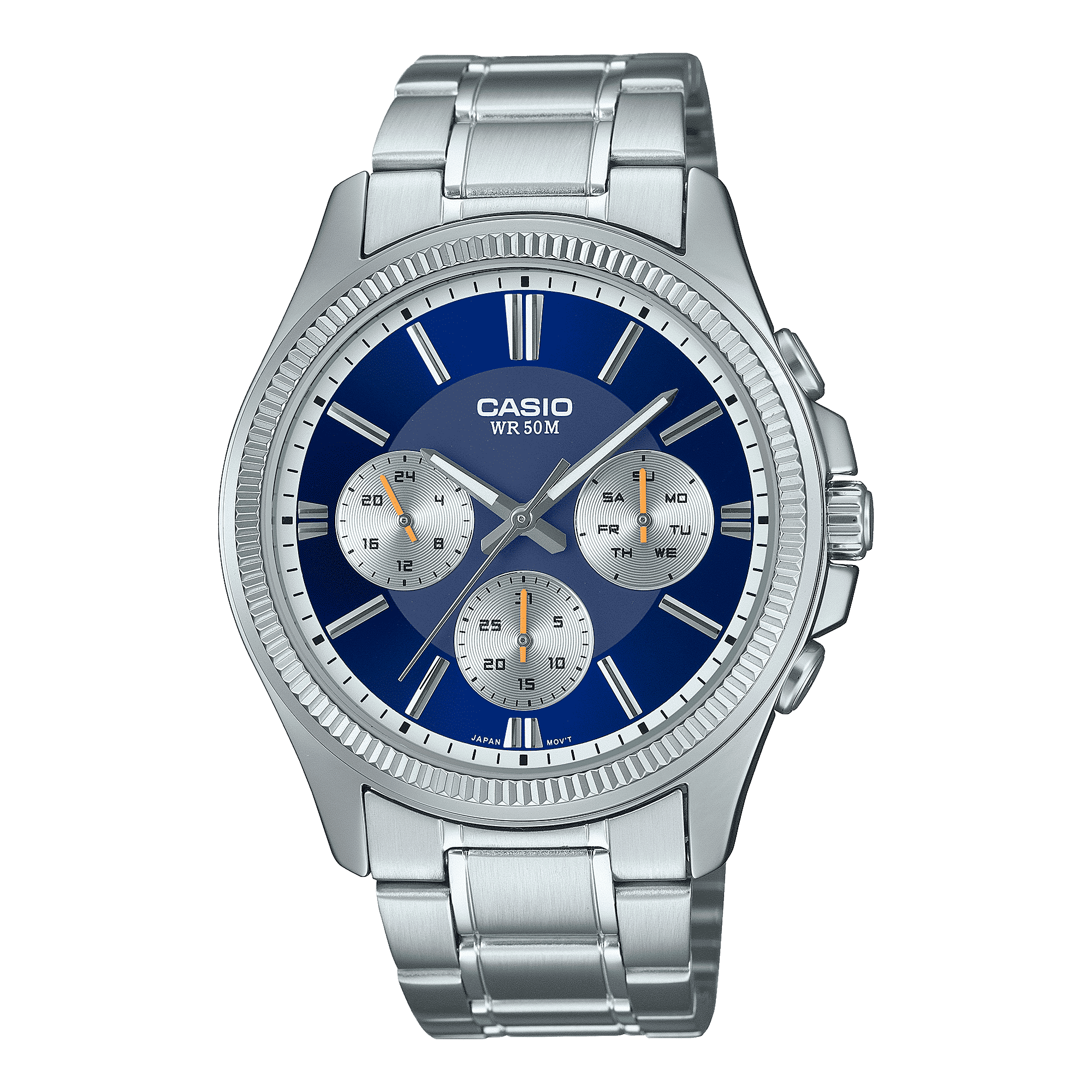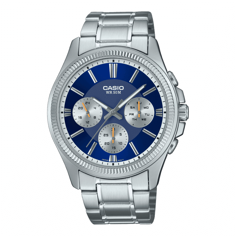 Comodi quadranti a incasso riportano giorno, data e orario con formato 24 ore. L’impermeabilità fino a 5 bar lo rende perfetto anche sotto la pioggia improvvisa.