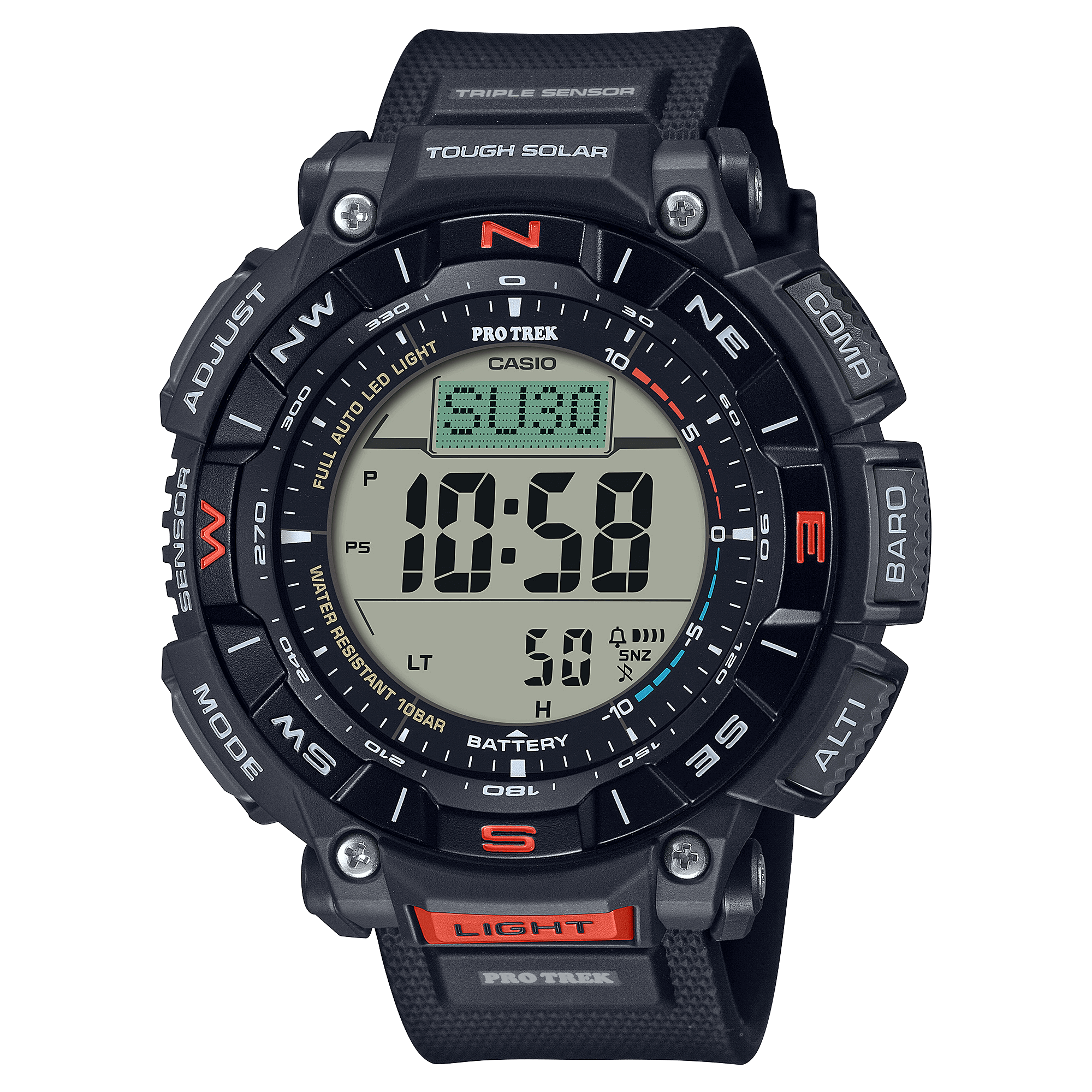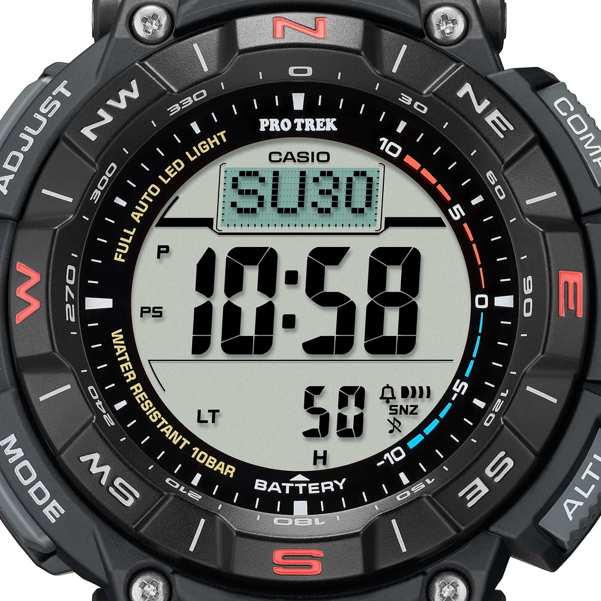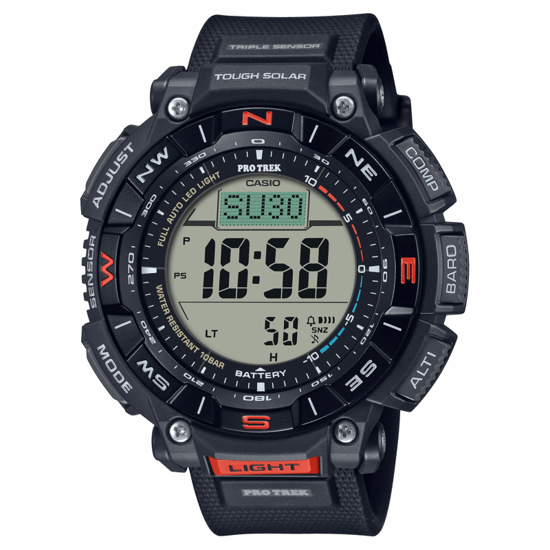 Avventurati nei grandi spazi aperti con un TREKKING PRO a energia solare con materiali eco-compatibili che rispettano l’ambiente. La linea PRO TREK di autentici orologi outdoor per gli amanti della natura presenta il PRG-340, un modello che incorpora plastiche da biomassa a basso impatto ambientale*, garantendo, al contempo, la stessa vestibilità al polso. La cassa e il cinturino in uretano sono realizzati in plastica da biomassa con olio di ricino, mentre il cinturino in plastica da biomassa è realizzato con mais. Il display LCD duplex presenta livelli separati per la grafica della bussola e le funzioni dell’orologio con un display della bussola più grande per una migliore leggibilità e una navigazione più semplice in un design bello e funzionale. La lunetta rotante semplifica la registrazione dei valori della bussola, mentre il sistema Tough Solar mantiene le funzionalità avanzate durante gli spostamenti. Esci ed esplora con un minor impatto sull’ambiente! * Le materie plastiche da biomassa sono polimeri prodotti utilizzando sintesi chimiche o biologiche di materiali provenienti da materie vegetali o altre sostanze organiche rinnovabili e sono ampiamente concepite per contribuire a ridurre l’impatto ambientale e promuovere il passaggio ad un’economia circolare.