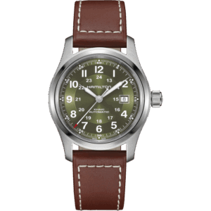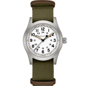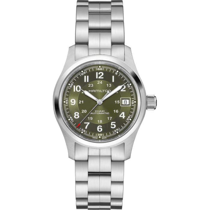 Ispirato all’originale orologio militare, il Khaki Field Automatic unisce tradizione militare e design contemporaneo in un modello versatile, pensato per i pionieri moderni. Combinando un quadrante verde kaki finitura soleil con un effetto a spirale sull’anello delle ore, il quadrante riflette la luce aggiungendo texture e profondità. Progettato per l’azione e l’avventura, l’esclusivo calibro automatico H-10 offre fino a 80 ore di riserva di carica, per un orologio che non ti deluderà mai.