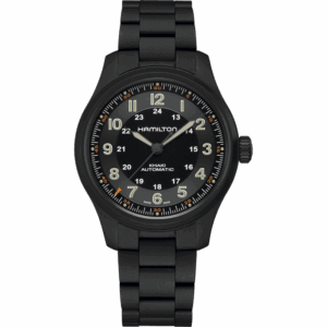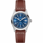 Ispirato all’originale orologio militare, il Khaki Field Automatic unisce tradizione militare e design contemporaneo in un modello versatile, pensato per i pionieri moderni. Combinando un quadrante blu navy finitura soleil con un effetto a spirale sull’anello delle ore, il quadrante riflette la luce aggiungendo texture e profondità. Progettato per l’azione e l’avventura, l’esclusivo calibro automatico H-10 offre fino a 80 ore di riserva di carica, per un orologio che non ti deluderà mai.