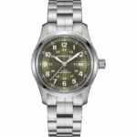 Ispirato all’originale orologio militare, il Khaki Field Automatic unisce tradizione militare e design contemporaneo in un modello versatile, pensato per i pionieri moderni. Combinando un quadrante verde kaki finitura soleil con un effetto a spirale sull’anello delle ore, il quadrante riflette la luce aggiungendo texture e profondità. Progettato per l’azione e l’avventura, l’esclusivo calibro automatico H-10 offre fino a 80 ore di riserva di carica, per un orologio che non ti deluderà mai.